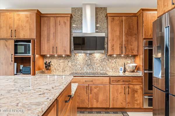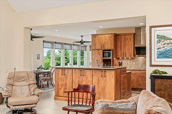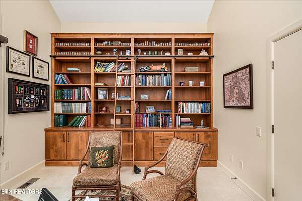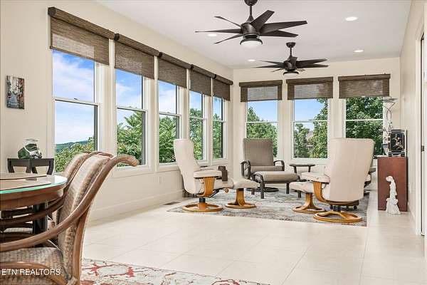 This elegant retreat in The Bluffs was built to celebrate the viewand your life within it. Set on 1.55 private acres, this custom-built retreat offers stunning views, striking architecture, and single-level living with style and substance. The thoughtfully designed layout features 4 bedrooms, 2 full baths, and 2 half baths, with both casual and formal living spaces that flow effortlessly for entertaining or everyday comfort. From the moment you walk in, you're greeted by soaring ceilings and a wall of windows that invite the outdoors in, while the show-stopping floor-to-ceiling granite fireplace anchors the main living space with timeless style. The gourmet kitchen features an oversized granite island, walk-in pantry, and seamless access to the dining area, sunroom, and screened balcony. Enjoy morning coffee from the screened balcony, work from the private office, and retreat to a serene primary suite complete with dual walk-in closets and a spa-style bathroom. There's even a large bonus room with its own half bath upstairs for hobbies, guests, or media space. With a 2.5-car garage, oversized laundry, two dedicated office spaces, and high-end finishes throughout, this home was designed for both function and wow factor. Perfectly positioned among mature trees with a sense of peace and privacythis is elevated living in one of Fairfield Glade's most sought-after settings. Buyer to verify all information before making an informed offer.