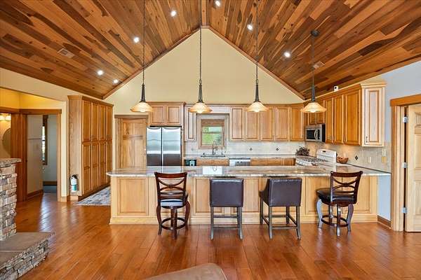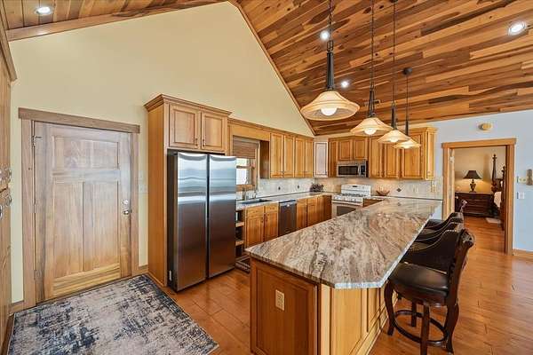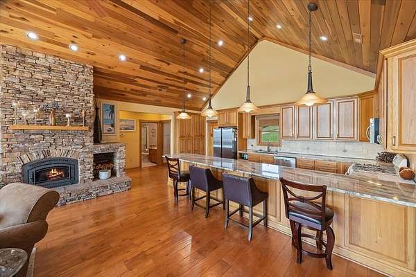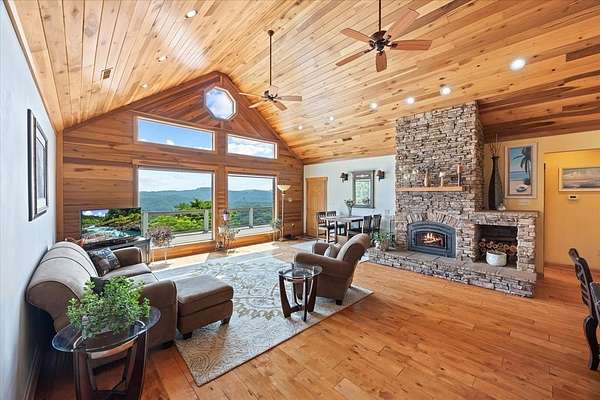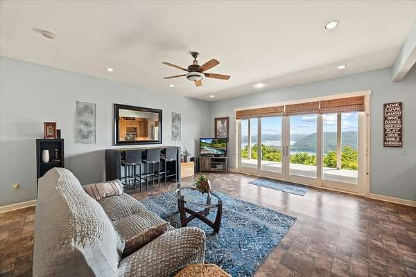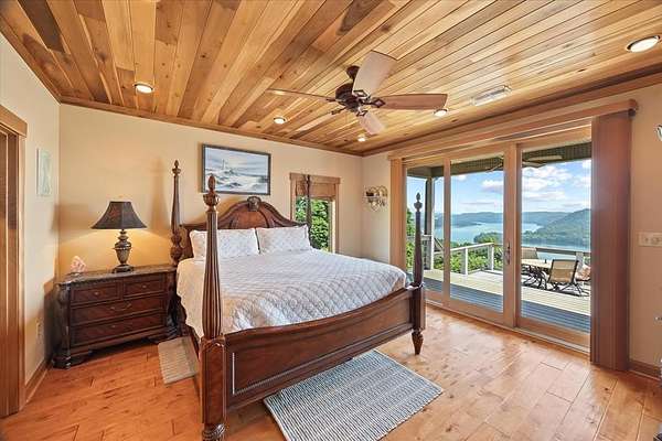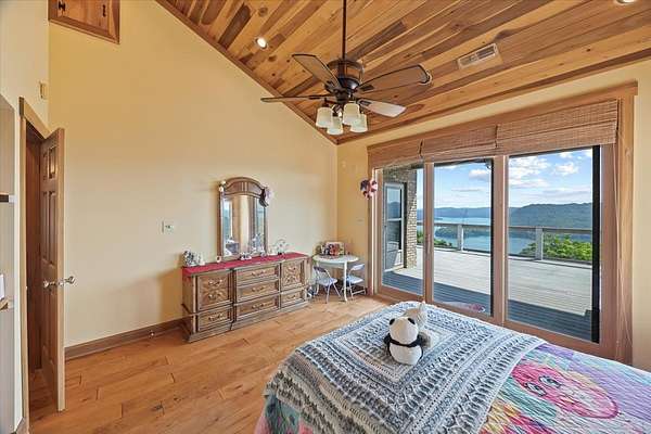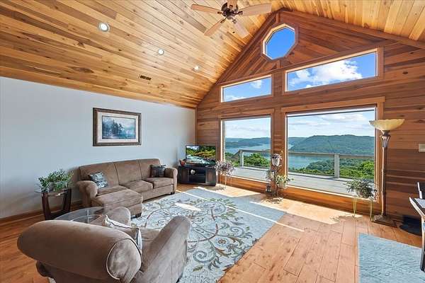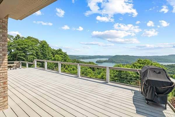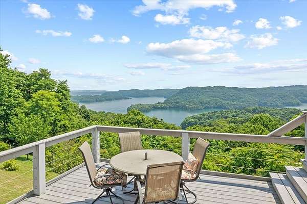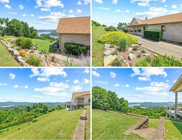 OH WOW! SUPER LAKE VIEW home (VRBO/Airbnb,rentals allowed),right in your face Dale Hollow Lake! 3000+ sft custom brick (on 1.76 ac.), gigantic deck w/ALL attention on the views of DHL & mountains. Open, split floorplan (master en-suite & bdrm 1 on main) soaring vaulted TnG ceiling, island bar seating (new granite tops; composite granite sink), wood burning stone FP and floor to ceiling windows to savor the sunrise and water view. Lower level is host to spacious family/media rm. (10' ceiling) & bdrms 3 and 4 (seller discloses septic permit for 3 bdrms). Perfect set up for in-law quarters or shared family. Lake view patio, Lg. laundry room too. Huge attached garage (12' high doors), 2x6 construction, poured concrete foundation walls, big $$$ in retaining and flower garden walls/driveway; roof new 2020, on demand gas W/H, location superb-The Pointe gated Dale Hollow Lake S/D with clubhouse, pool & fitness facilities. 2 Marinas just minutes away. Shopping and healthcare 25 minutes.
