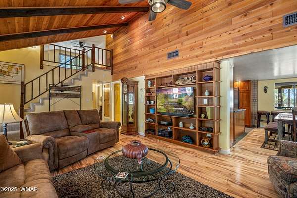 Welcome to ''ALPINE SHANGRI-LA'', Located in the pines and the heart of the White Mountains. Nestled on 7.22 acres in the desirable Alpine Highlands subdivision, this secluded estate offers peace, privacy, and panoramic beauty at every turn. Enter through the gated driveway and follow the scenic, tree-lined path down to your own forested oasis. This fully-furnished, modern home is truly turn-key. Just bring your clothes and settle right in. Step onto the expansive, fully covered wraparound porch and take in breathtaking views of the surrounding meadows and timber. Watch elk herds roam right past your front door and enjoy daily visits from abundant wildlife all from the comfort of your porch. Inside, the home has been extensively renovated with all-new flooring throughout, updated baseboards, fresh interior paint, modern electrical and plumbing, upgraded fixtures, and new ceiling fans. It's clean, contemporary, and move-in ready. A dream for horse lovers, the property features four covered horse corrals in various sizes, a dedicated hay barn, bird enclosure, and a chicken coop. With easy access to the National forest you can ride off into the sunset right from your home. A separate multi-use building includes eight state-of-the-art dog kennels with heat, water heater, sink station, and washer/dryer hookups. It also includes a private guest room with French doors and a large patio, easily convertible into a second home or full guesthouse. Additional amenities include a two-car detached garage with extended workshop space, and a convenient RV hookup with dump station. Whether you're into world-class hunting, fishing, hiking, horseback riding, or skiing, you'll find it all nearby. Just a short drive from Sunrise Ski Resort, this rare mountain retreat offers unmatched tranquility with easy access to outdoor adventure.