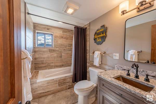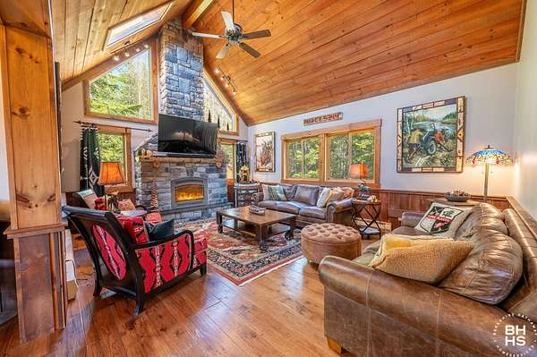 An Adirondack Retreat with privacy and beautiful vistas of the Adirondack Mountains to include Algonquin, Marcy, Cascade, Wright and Colden Mountains along with a unique Olympic bobsled run view. There are 6 total bedrooms, 5 bathrooms, a great room, 3 kitchens, an office and a game room on 3 levels with a lower-level walk-out. This home may be rented for vacation rentals, booked 2026 already has over $104,000 booked. The detached separate guest cottage and garage with a second-floor bedroom, kitchen, living room and bathroom (included in the totals described ) with French doors, a studio apartment or quiet artist space. Relax on the wrap around decks of this private home and admire the vast mountain views with your fire pit to relax in evening star gazing. Ideal for outdoor sports enthusiasts, you can walk out to cross country ski, hike, mountain bike and play golf just steps away. Either relax indoors in the cozy living room with a stone fireplace, or meander to the Olympic Village Main Street shops and restaurants just minutes away. This home includes furnishings.