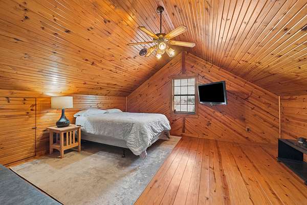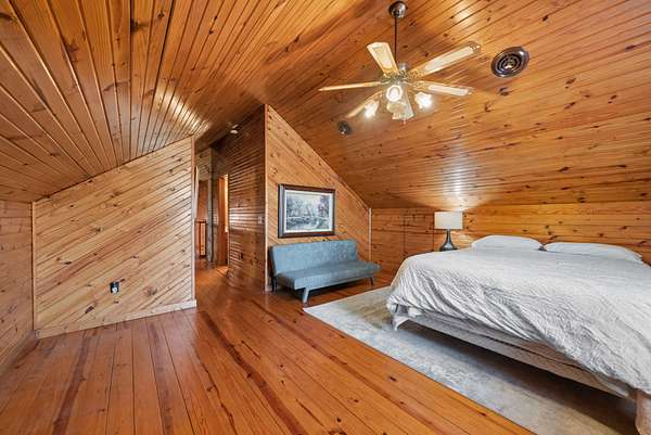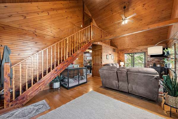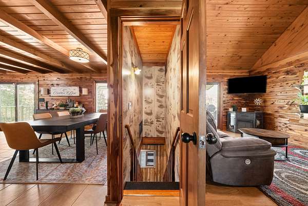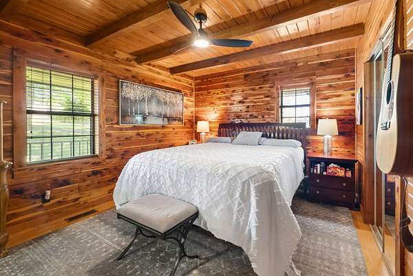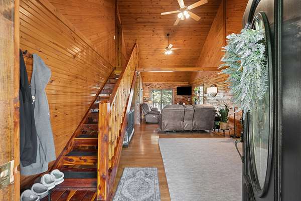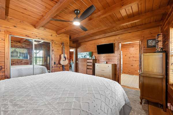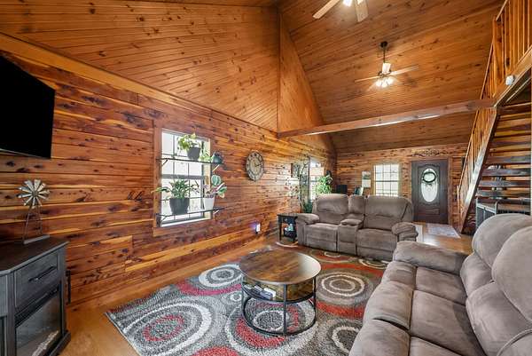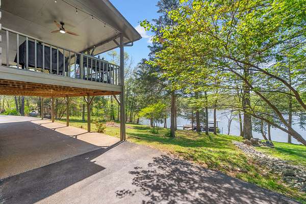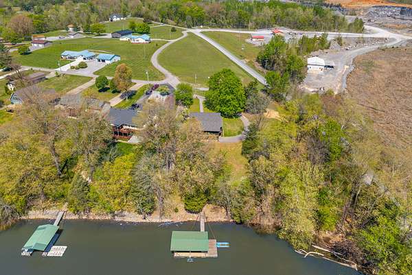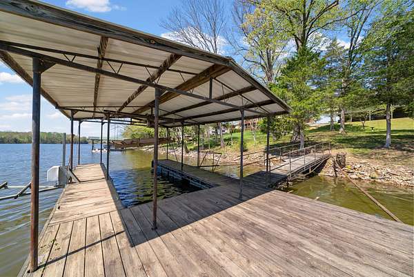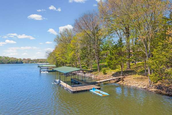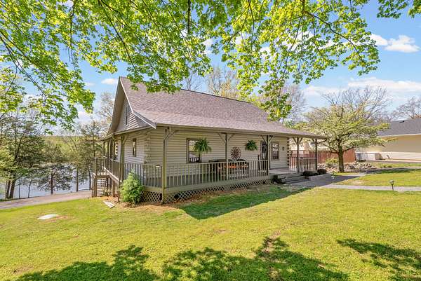 Come on down to Driftwood Drive, where nature’s spirit comes alive in this perfect log home paradise on Lake Barkley. Situated on almost 3 peaceful acres, this one-of-a-kind property offers breathtaking lake views, a private covered boat slip, boat and jet ski lift, and the ultimate setting for relaxing or entertaining. The home features two master suites, including one on the main level and one upstairs, along with hardwood floors in most areas, tile in the kitchen and guest half bath and a propane fireplace in the basement rec room. In 2024, the exterior was fully painted, a new roof was installed, and new stainless steel,energy star, Samsung smart intelligence appliances which are controlled with your phone app with glass fronts were added, giving this home the perfect blend of rustic charm and updated appeal. Outside, the incredible 3/4 wraparound deck and oversized covered deck with a treehouse feel overlook the water, dock, and surrounding natural beauty. Additional highlights include two buildable lots, a 3-car detached garage, attached basement garage, circular driveway, and a beautiful park-like setting. Located just 5 miles from Lake Barkley State Resort Park, and only 2 min away from Canton Heights private access boat ramp this property is a rare opportunity to own your own private slice of lakefront heaven.