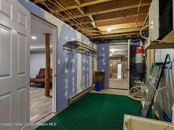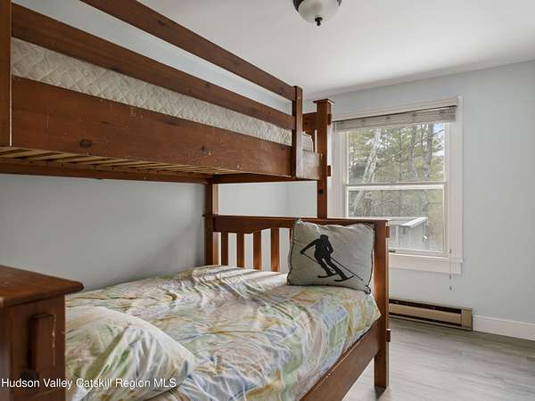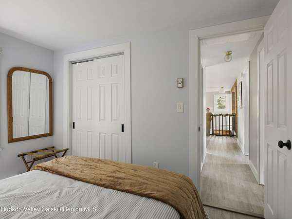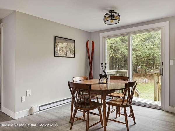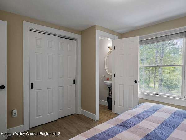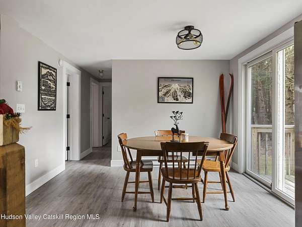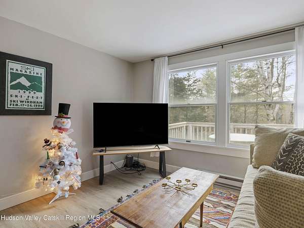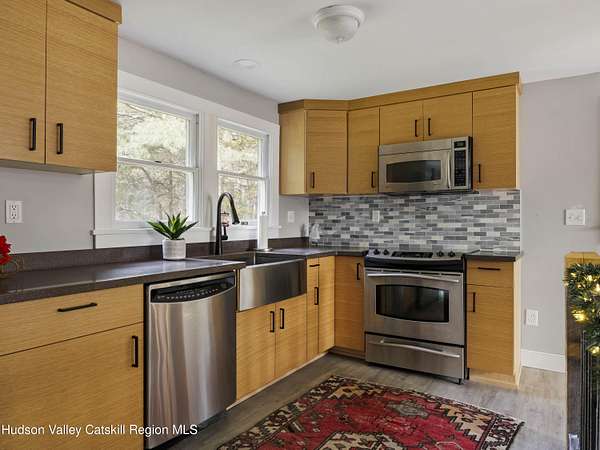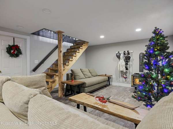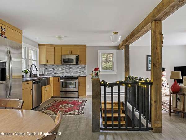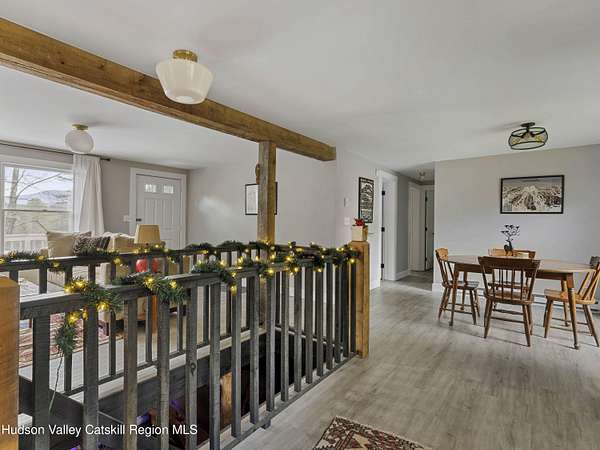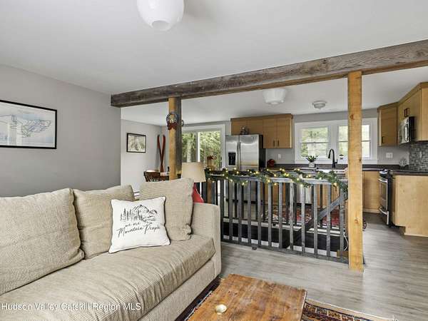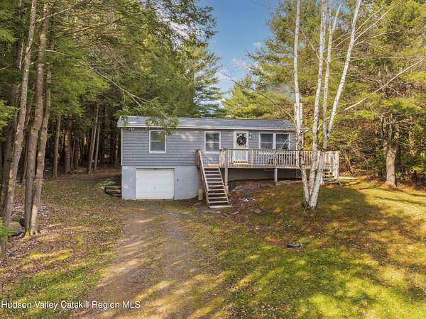 PRICE CUT! Your Perfect Winter Base in the Catskills - Central to 3 Major Ski Resorts Drive through scenic countryside and rolling mountain views to a quiet no-outlet road, where this fully renovated ranch with a full finished basement and attached garage offers the perfect four-season retreat. With a recent price cut and winter right around the corner, this is your chance to buy now and be in for the season-ready for skiing, snowshoeing, and cozy mountain weekends. Ideally located between Windham Mountain Club, Hunter Mountain, and Belleayre Ski Resort, this cozy country getaway is the ultimate base for winter adventures and year-round relaxation. Inside, a modern farmhouse design blends clean lines with rustic warmth. The open living and dining areas flow seamlessly into a beautifully updated kitchen with horizontal white oak cabinetry, solid-surface Corian counters, new appliances, and a 30-inch farmhouse sink. Custom trim work, lodge-style pine posts, and handcrafted live-edge stairs add distinctive Catskills charm. The home offers three bedrooms, 1.5 updated baths, and a fully finished lower level featuring second cozy living room barnwood-style flooring, fresh paint, and a woodstove radiates warmth after a day on the slopes. From here, step into a heated mudroom-perfect for drying ski gear-with laundry hook-up and access to the attached one-car garage. Outdoors, enjoy a spacious front deck with seasonal views of Hunter Mountain, while the peaceful, flat backyard features a firepit area and a picturesque footbridge over a babbling seasonal stream-an incredibly tranquil setting in every season. With maintenance-free vinyl shake siding, a new roof, and nearly three acres of land, the property is both beautiful and low-maintenance. Whether you're looking for a private getaway, short-term rental opportunity, or year-round mountain home, this stylish retreat-minutes from three major ski areas-offers the best of Catskills living in every season. A 3D Walkthrough Tour is available in the digital Lookbook or by request from the listing agent.