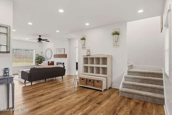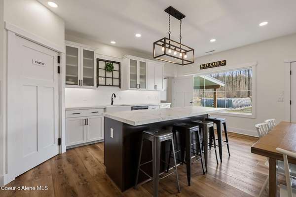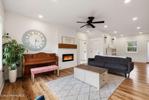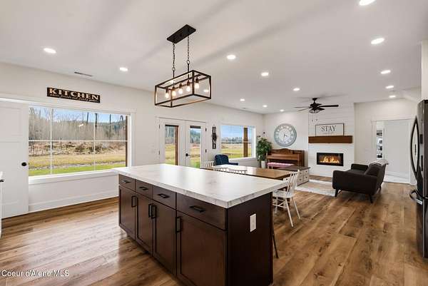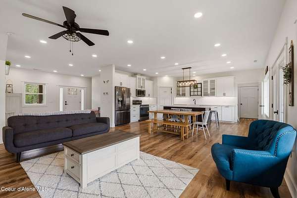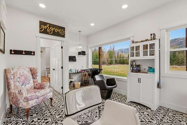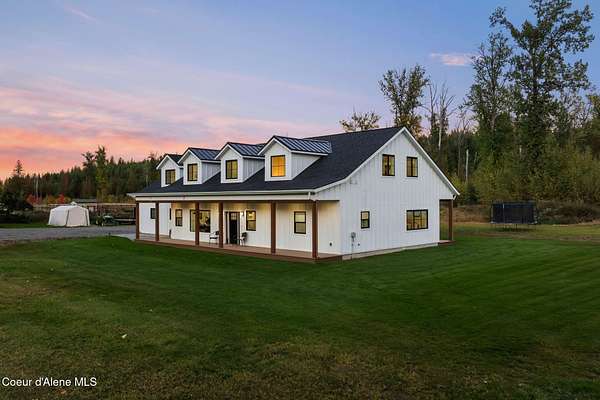 This property offers the kind of lifestyle that's hard to find, where you can be in town for groceries, coffee, schools, or practice at Field of Dreams in just minutes, then come home & feel like you've completely escaped it all. It's the best of both worlds: convenience when you need it, privacy & space when you want it. Here, the backyard becomes part of your everyday routine, whether that means hopping on the dirt bike, taking the four-wheeler out on your own private trail system, or simply enjoying the lush green grass and open space to play, gather, or unwind. Mornings start slow on the covered deck with coffee & sunshine pouring through the south-facing windows, while evenings are made for relaxing & enjoying the quiet. Inside, the home is designed for real life with warm in-floor heat, abundant storage, and a flexible separate-entry salon space that could easily serve as a business, studio, guest area, or bonus living space. This is where North Idaho living feels effortless.