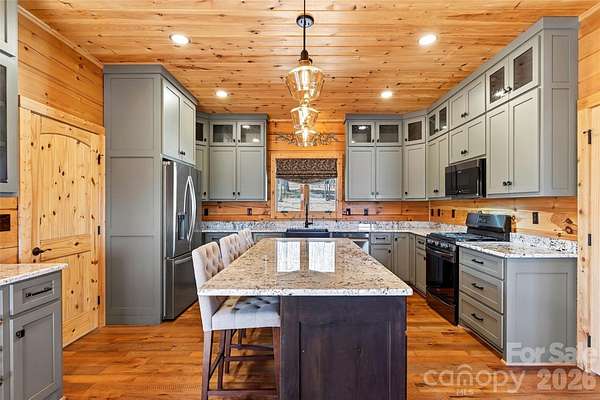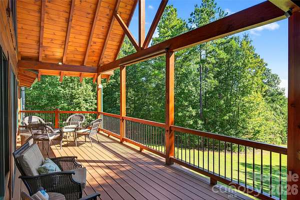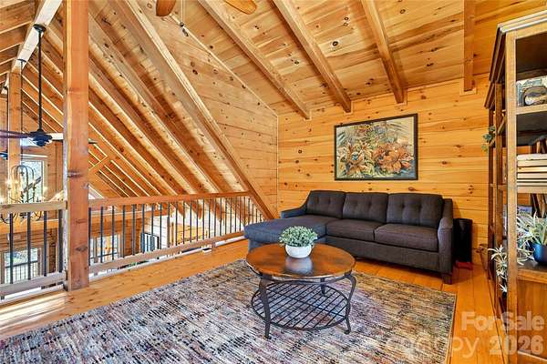 Welcome to your own private mountain retreat, where over ten sprawling acres of natural beauty meet thoughtful craftsmanship and modern convenience. This stunning 4,042 square foot home offers three bedrooms and three and a half bathrooms, all nestled beside a serene community lake with dock access just mere steps from your wrap-around porch. The quality of construction here is immediately evident. If the front door alone doesn't convince you of the workmanship crafted through the home then there are other features that would support that fact. From the front entry your eye is drawn immediately to the Close range Mountain Views of the Southern exposure side. Then the gorgeous custom kitchen and open dining space blends warm rustic charm with modern functionality creating an inviting and highly livable space. Natural wood walls and hardwood flooring throughout ties the entire room together with a cohesive earthy feel. The custom painted cabinetry offers a sophisticated contrast to the wood tones, extending to the ceiling for ample storage and a clean, built-in look. A wood-burning fireplace anchors the living room, while propane powers the stove, oven, and water heater. A full-house generator with shed load ensures you never skip a beat during storms, and a whole-home water filtration system delivers pure refreshment from every tap. The oversized 36-by-28 garage is a dream, featuring a generous storage loft with walk-up stairs measuring 16 by 36 feet - because you can never have too much storage! An already-sectioned parking spot accommodates your recreational vehicle, making weekend adventures effortlessly convenient. Step outside and discover several walking paths the seller has created throughout the ten-acre parcel, perfect for exploring by utility vehicle or on foot. The fire pit overlooks a lovely backyard where privacy and peacefulness reign supreme. With only three lots on this quiet road - all included in this property - your nearest neighbors are the birds. Downstairs, a roughed-in wet bar awaits your finishing touches in the basement, promising endless entertaining potential. This is more than a home - it is a lifestyle. Schedule your private tour today and experience mountain living at its finest.