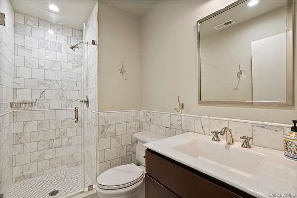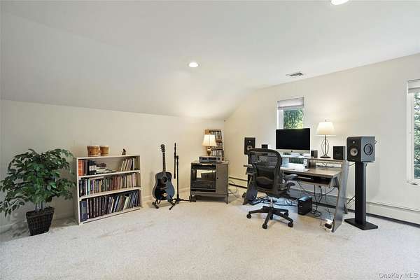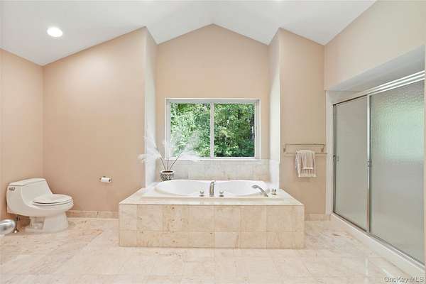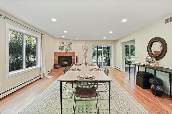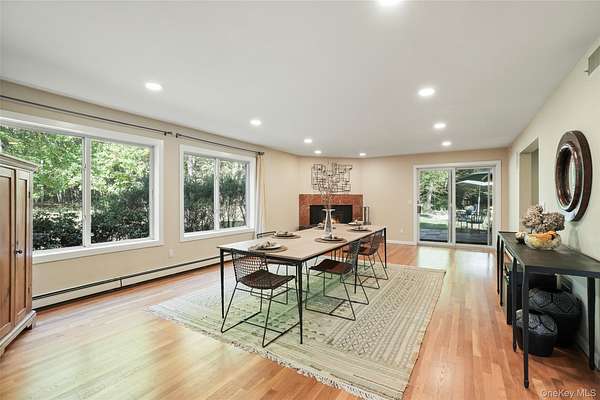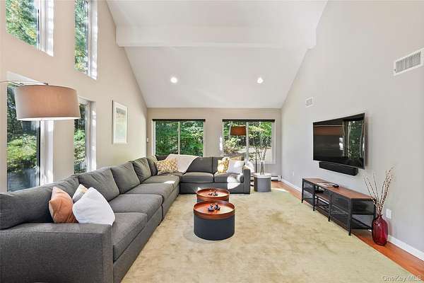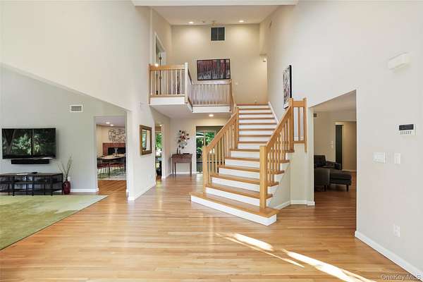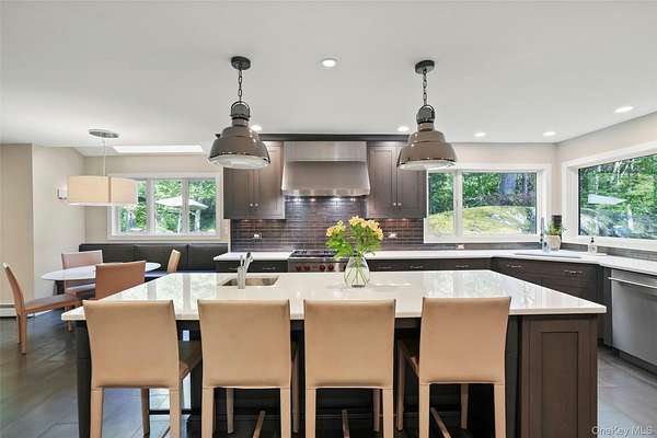 Beautifully set on 4 bucolic acres in South Salem, this impeccably maintained 4-bedroom Contemporary Colonial offers elegance, privacy, and exceptional living spaces. A gracious entry with vaulted ceilings leads to formal living and dining room with fireplace, both ideal for entertaining plus an additional family room. The spectacular chef's kitchen, designed by Maggie Nielsen Interiors, features custom maple cabinetry, white glass countertops, a 9' island with prep sink, Wolf/Sub-Zero SS appliances, and sunlit views of the property. Upstairs, the primary suite is a true sanctuary with vaulted ceilings, a large custom California Closet, and a spa bath with soaking tub, dual vanities, and separate shower. Three additional bedrooms and two updated full baths complete the upper level, along with a versatile finished room above the garage - ideal for work or play. Plus an unfinished lowel-level with walkout and plenty of storage. Enjoy indoor-outdoor living on the bluestone patio with fire pit overlooking the tranquil stream and wooded setting. Convenient to Katonah train, schools, and parks, this retreat blends sophistication and warmth in a coveted South Salem location and Katonah-Lewisboro Schools.