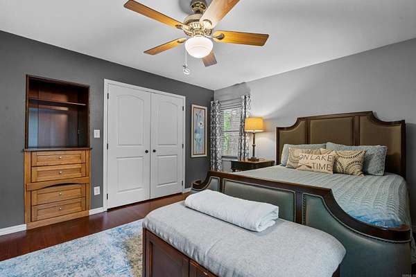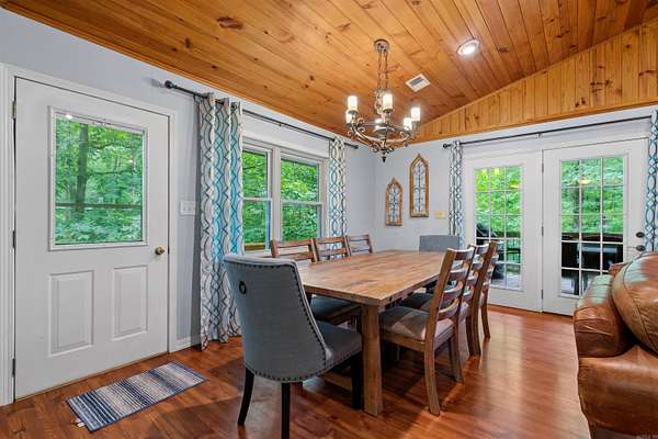 Discover this inviting, fully furnished home located just minutes from Lake Ouachita--one of the cleanest and clearest lakes in the United States. Currently used as a successful vacation rental, this property offers a spacious, open floor plan perfect for entertaining or relaxing. The main level features a bright living area, a primary bedroom and bath, and access to a large covered deck ideal for outdoor dining, grilling, and lounging. The lower level offers additional living space with an open den, kitchenette, two bedrooms, and a full bath. New deck, water heater, downstairs refrigerator. French doors open to a generous patio area that leads to a fire ring and a serene, wooded setting. A 16' x 32' detached storage building/garage provides ample room for boats, lake gear, or hobbies. Located within a mile of Twin Creek Recreation Area, Denby Point, and Lake Ouachita Shores Resort & Marina, you'll enjoy easy access to boating, swimming, hiking, biking, and exploring the nearby Crystal Mines. Experience the beauty and tranquility of this charming lakeside community--perfect for full-time living or a weekend getaway.