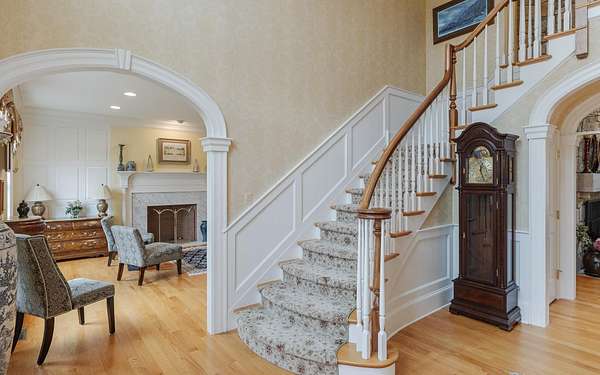 Exquisite 4-Bedroom, 7-Bathroom Hilltop Estate on 5.67 Acres with 7,000+ finished Sq Ft with attached 3-Car Garage + Oversized, Detached 4 car garage! Welcome to this stunning Colonial offering the perfect blend of luxury, space, and privacy -- all just minutes from the quaint Walpole Village. Nestled on a beautiful landscape, this custom-built estate is designed for refined living and grand entertaining. After winding up your private drive, step inside to a stunning main level featuring a spacious first-floor primary suite with a spa-inspired bathroom, soaking tub, and his-and-hers walk-in closets. The heart of the home is a chef's dream kitchen boasting high-end appliances, custom cabinetry, a walk-in pantry, granite countertops, and a large center island perfect for gathering. The living spaces are adorned with a mix of hardwood and tile flooring, complemented by plush carpeting in select areas. A large bonus room on the second floor provides endless possibilities for relaxation or hosting guests. Each of the four oversized bedrooms offers its own private bathroom and walk-in closet, ensuring comfort and privacy for everyone. An additional three full bathrooms cater to guests and entertaining needs. Enjoy the outdoors from the expansive screened-in porch, or host unforgettable gatherings on the custom stone patio, featuring a built-in gas grill, surrounded by serene wooded views. The full-size concrete basement offers massive potential for more living space.