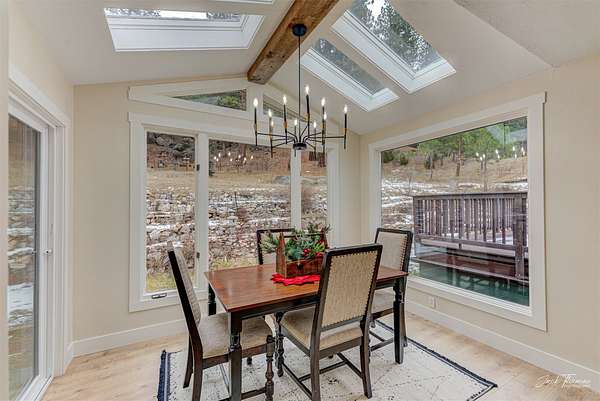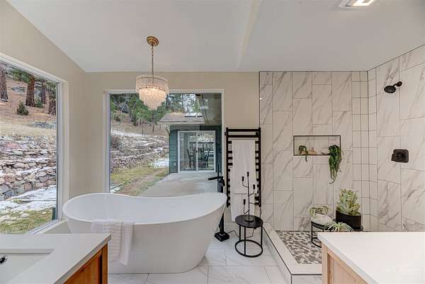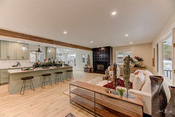 They say location is everything in real estate-and this property truly delivers. Set on just over 10 acres that border hundreds of acres of BLM land, the home is surrounded by impressive boulders, tall pines, and exceptional privacy. Beautifully remodeled, the home features three well-appointed bedrooms, two full bathrooms, and a detached two-car garage topped with a spacious party deck. From the moment you step through the front door, you'll feel an immediate sense of comfort and belonging. The open main living area is filled with natural light from every direction, showcasing a stunning gas fireplace and an expansive kitchen that effortlessly anchors the space. Down the hall, you'll find the contemporary main bathroom along with a flexible laundry room that can double as an office or craft room. Each bedroom offers generous space, ample storage, and serene views that bring the outdoors in. The true highlight, however, is the master suite. A large walk-in closet provides abundant space, and the bedroom's windows frame the surrounding boulders and trees, creating a peaceful connection to nature. The luxurious master bathroom features a walk-in tiled shower, a deep soaking tub, and dual vanities-making everyday living feel like a spa experience. This home and property are truly one-of-a-kind, and opportunities like this don't come around often. You won't want to miss it.