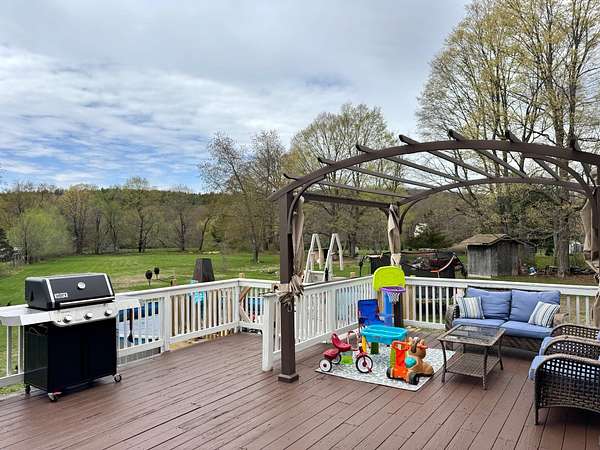 Move right into this 3 bed, 2 bath sun-filled ranch with expansive yards on a quiet, country road. A comfy, open living room with wood burning stove and large bay window receives you and flows through to the kitchen and separate dining room. Step out on the expansive deck and enjoy the above ground pool. The main floor boasts three bedrooms and a newly renovated primary ensuite bath with an oversized, custom tiled shower and updated fixtures. A laundry room is conveniently located on the main floor as well. The full basement is partly finished and provides: two additional rooms, workshop and Bilco doors for easy exterior access. The large rear yard could come complete with the existing chicken coop and 13 chickens, if you so desire! There's also a gated, fenced, rear dog run. Conveniently close to Taconic State Parkway, Hudson, Chatham, The Berkshires, hiking, fishing, skiing, and everything the Hudson Valley has to offer!