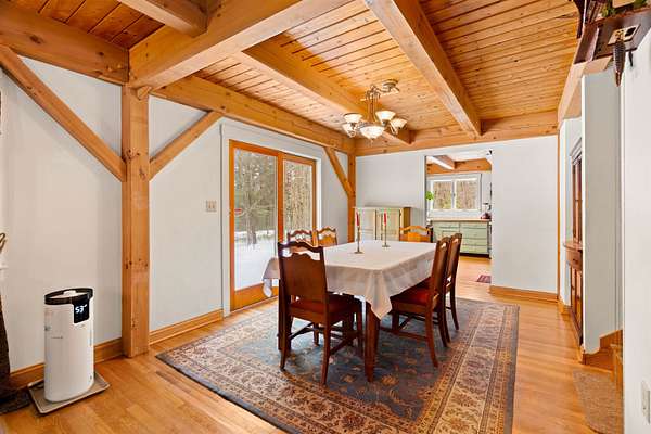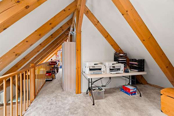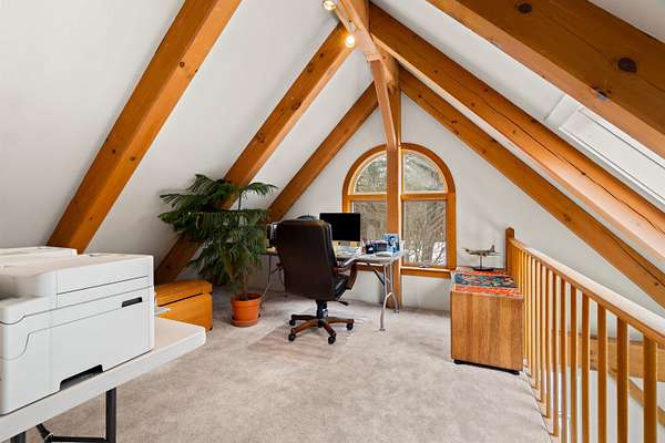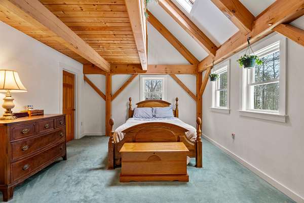Tucked away on 3 private acres of sought after Brookline, this stunning post and beam home is a rare find — where authentic character, thoughtful design, and the peaceful rhythms of country life come together beautifully. From the moment you arrive via large horseshoe shaped driveway, the setting captivates. A new lawn is hiding under the snow, as well as lovingly created flower gardens framed by two charming arbors, and carefully placed rock gardens surround the property, giving it a storybook quality that changes with every season. A very large 48' x 24' four-bay barn/garage stands ready for your hobbies, equipment, or whatever your imagination calls for! Inside, the warmth of exposed post and beam craftsmanship carries through every room. The layout is as flexible as it is functional, with a first-floor bedroom and a library that transitions effortlessly into a private home office — ideal for those who work from home. The kitchen features a generous walk-in pantry, breakfast peninsula, and feels central to the home. Retreat upstairs to the massive primary suite — a true sanctuary with a spacious walk-in closet outfitted with brand new mahogany shelving, a private en suite full bath, and a stunning two-sided loft perched above that's perfect for a reading nook, studio, or quiet escape. The large theater/ bonus room offers endless possibilities for entertaining, movie nights, or recreation. There is also a welcoming mudroom and screened porch off the back of the home looking out over the gardens. Privacy, charm, quality craftsmanship, and acreage — all within the boundaries of Brookline's highly regarded school district. Properties like this don't come around often.