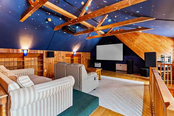 - Basement, Bathroom x 3, Bedroom x 3, Dining Room, Kitchen, Library, Living Room, Loft, Media Room