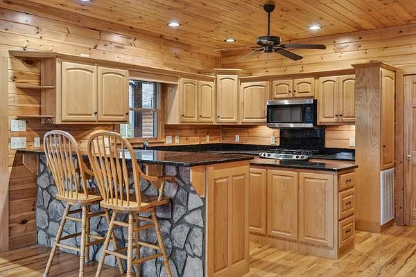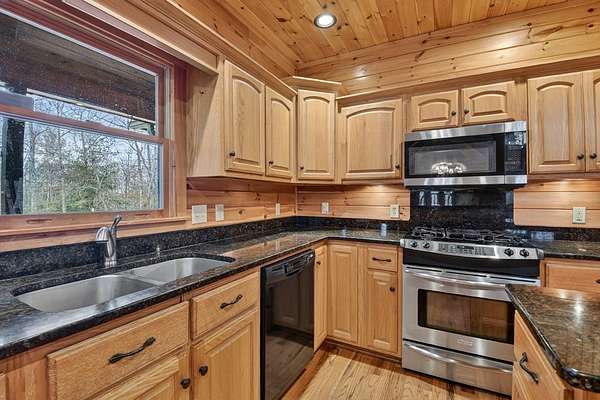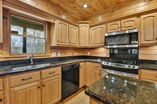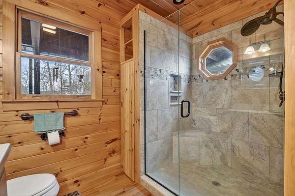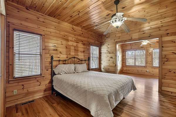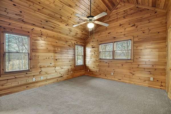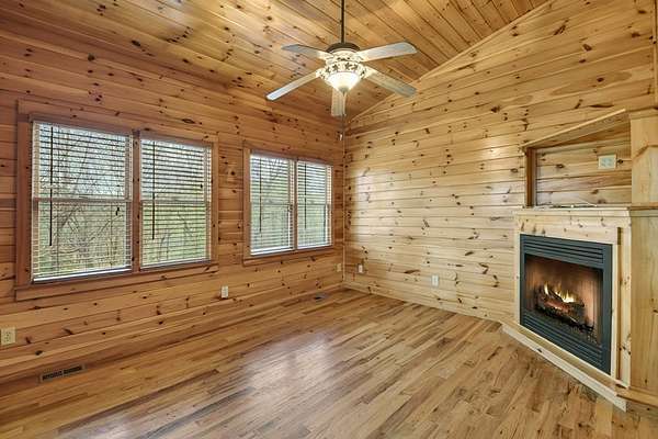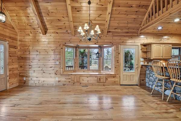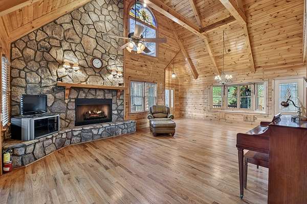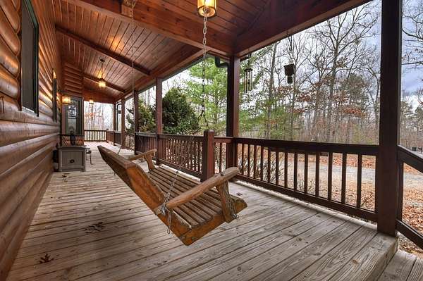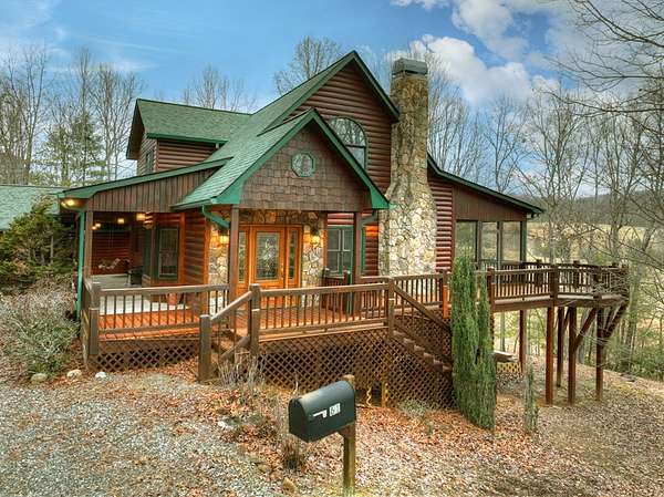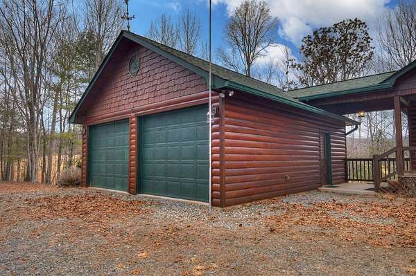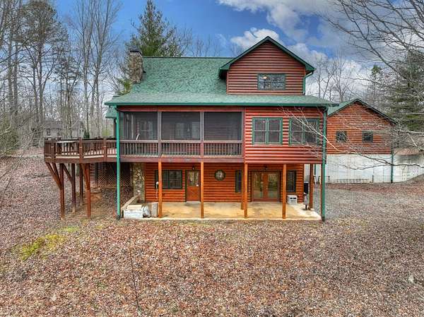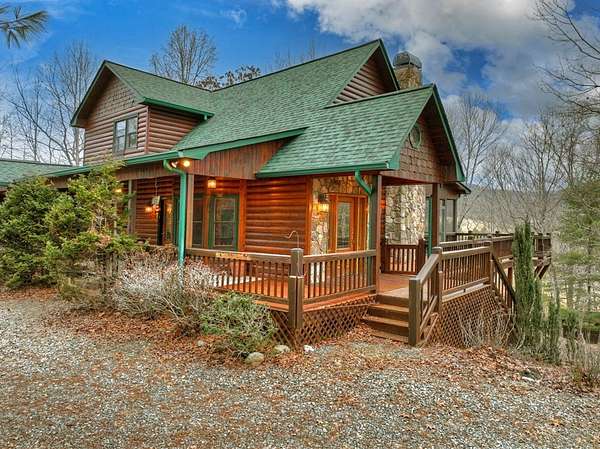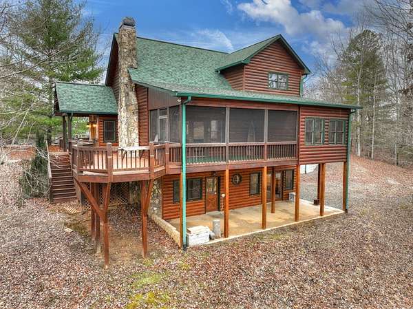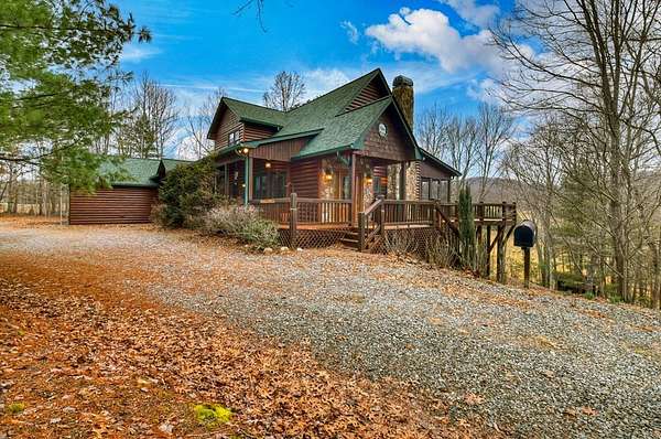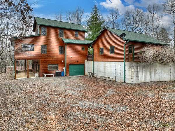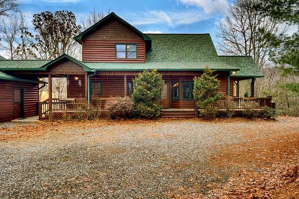 Est $4,024/moDiscover Mountain Style living in this beautiful crafted Log-sided 3BR/3BA home on 1.56 acres with covered front porch, side deck, and screened back porch. Main level features spacious living room with stone fireplace, kitchen with island and adequate counter space and appliances, master suite with sitting area and fireplace, tile shower, double sinks, and laundry. Upper level offers office/loft with built-ins plus bedroom and bath. Basement includes finished 1BR/1BA area, workshop, and garage with patio access. Main-level 2-car garage, outbuilding, garden spot, seasonal views, and circle driveway. Located between Blue Ridge and Blairsville....