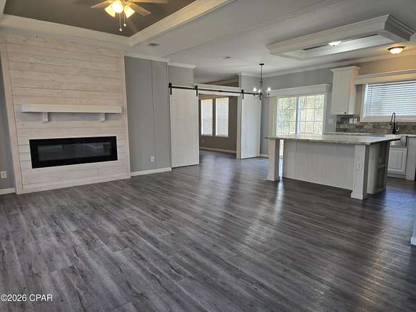 Gorgeous 4 Bedroom 3 Bath Home on just under 2 acres in Crawfordville. This split floorplan home features a large open concept in the main living and dining area that could also be separated by the well placed barn doors. The kitchen features a large center island and abundant cabinetry and is perfectly positioned between the living room and den areas. The master suite offers and abundance of room. The master bath features a double vanity, walk-in shower, soaking tub, and a large walk-in closet. On the opposite end, this homes has 3 more very well sized guest rooms, and 2 more full baths. Outside the large corner lot offers multiple hardwoods, and ample room for recreation and room to run. This home is priced to sell so schedule your showing today!