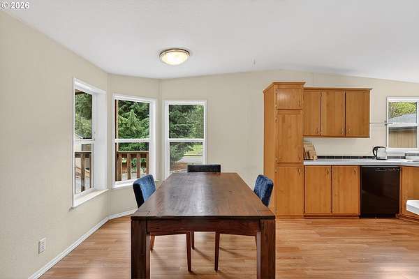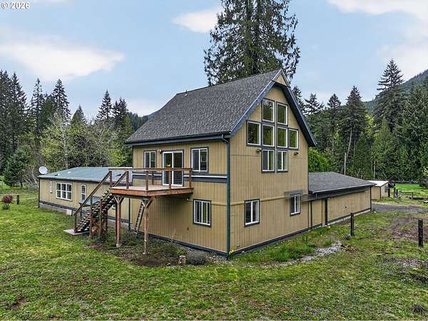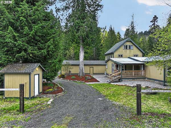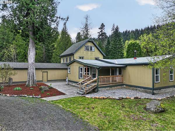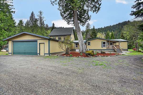 Peaceful 5-acre setting in Cook, WA with level, usable land bordered by mature evergreens. Adjacent to Big Cedars Park, which offers access to the Little White Salmon River and just minutes from recreation in the Gifford Pinchot National Forest enhancing this special rural location. The property features a 1997 manufactured home with 3 bedrooms, 2 baths, updated kitchen, and open-concept living, plus an attached stick-built 2-story addition with an additional bedroom and bath on the main level, large upper-level family room, loft space, and deck overlooking the land. The versatile layout may lend itself to multi-generational living, guest space, or potential separation for extended living needs, with possible kitchenette opportunity in the addition subject to buyer verification. Large 24 x 48 attached garage provides excellent room for vehicles, storage, or projects. A peaceful property with flexibility, function, and a strong connection to the outdoors. Cook, WA offers the kind of setting many land buyers are looking for-open space, natural beauty, and a peaceful rural atmosphere in the Columbia River Gorge. The area is known for its scenic surroundings, access to outdoor recreation, and a climate that includes warm, dry summers and mild to cool winters. Whether for a full-time residence, recreation, or a getaway property, Cook appeals to those who value privacy, fresh air, and room to enjoy the outdoors. Conveniently located approximately 20 minutes from the Hood River Bridge, with easy access to Hood River, White Salmon or Bingen for shopping, dining, and other Columbia Gorge amenities.