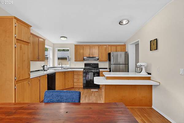 - Dishwasher, Free Standing Gas Range, Free Standing Refrigerator, Range Hood