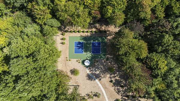 Price adjustment by highly motivated sellers. Custom, 2021, one level home in coveted Woodlands community. Three bedroom, 3 bath contemporary with custom finishes throughout. Comprised of 2 parcels, totaling almost 2 acres, first parcel is site of house/garage and second site of pickle ball court but still buildable with room for second garage, coach house or second house, subject to architectural review and permitting. Home features stunning open design with vaulted ceilings, large windows featuring private wooded views, custom kitchen with massive waterfall island. Almost 2 acres of finished custom landscape and hardscape, including private pickle ball court. Just over 1 hr to Chicago by commuter train, (South Shore Line) , or interstates. Share community pool, tennis/basketball courts. Home features both a master suite (bedroom/bath) and junior suite (bedroom/bath) as well as third bedroom and bath. Large vaulted great room is home to dining area, living room with gas fireplace, large kitchen with 8 ft. island, and bonus sun room opening to large patio. Thirty minutes to South Bend/Notre Dame. Minutes to Lake Michigan beaches and marinas, and all of Harbor Country venues. Survey, floorplan and summary of all upgrades available.
