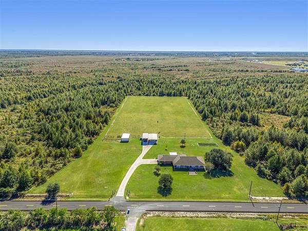 Charming traditional-style 2-bedroom, 2.5-bath home on 6 acres, located along the Calcasieu-Cameron Parish line. This inviting property showcases rustic Southern character throughout. The spacious family room opens to a large kitchen featuring hickory cabinets, a mini bar area, and a double oven--ideal for preparing holiday meals. The hickory cabinetry continues into the bathrooms for a cohesive look. The sunroom includes a convenient half bath and offers access to both the wrap-around front porch and the back patio, where you can relax and enjoy beautiful sunsets. Major updates in 2020 include new Hardie board exterior, new windows, new roof, new HVAC (interior and exterior), new plenum and ductwork, 21" blown-in insulation, storm shutters, new living room flooring, and new attached garage with a decked attic--perfect for storing holiday decor. These improvements help enhance energy efficiency. The property features 2 acres surrounding the home and 4 acres of fenced, improved pasture--ideal for a mini-ranch or farm with room for horses, cattle, chickens, gardening, or future expansion. Outbuildings include a 38x14 RV cover, 30x20 barn, 24x24 Mueller shop with 24x18 canopy, and a 16x8 tractor shed. Experience peaceful rural living with plenty of room to grow. All measurements are M/L; buyer to verify.