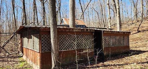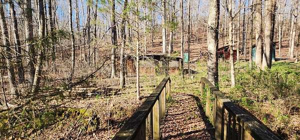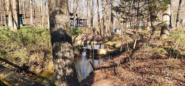 Est $144/moAlmost 1/2 acre lot. Live spring fed creek running across front of property. Mobile homes, cabin, tiny home allowed. Old Cabin given no real value. Mostly fenced. Bridge needs work.