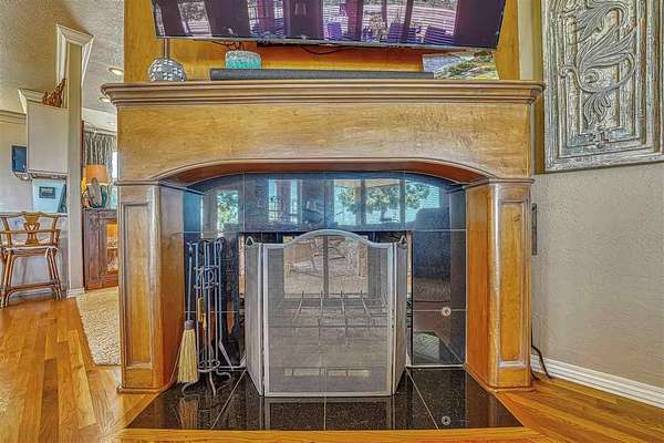 "Wow" is what you will be saying after seeing the view from this truly unique property which has a country feel within the city limits on Lawton's east side. The home sits high on a hill overlooking all of the Lawton/Ft. Sill metro area leading out to a great view of the Wichita Mountains. This has the best of all worlds in a well laid out open concept one story with an abundance of natural light. The home sits on five acres with "priefertA" pondersosa fencing with steel rails surrounding it. Inside, the home has three living areas including with the den and front living room separated by a two sided see through wood burning fireplace all framed with hand trimmed woodwork. From the den large windows overlook the patios and give you awesome views. It also overlooks the spacious gourmet kitchen with a breakfast bar, stainless steel appliances, gas cooktop and double ovens. The solid surface counters have tile backsplashes with loads of designer styled cabinetry above and below. The expansive primary bedroom suite features a pan ceiling and leads into an ensuite bath with a whirlpool tub, separate shower, double vanities, and two walk-in closets . The other three bedrooms are all spacious with large closets. Two of which have a jack and Jill full bathroom between them. The third living area is currently used as an office with beautiful built on site bookcases and cabinetry. The utility room starts with a prep area for the kitchen with another dishwasher and a large sink alongside a built-in desk. That leads into the main utility area with cabinets galore over and around the washer/dryer area. The three car garage has one of the best floor coverings you'll ever find which was recently done with a floating plastic tile that looks great and wears well. The garage also comes complete with more fine cabinetry, a built-in sink, workbench, and a storm cellar with walk down steps and a sump pump so the area can also be used for storage. Out front is a circular drive that leads to the front porch which is all landscaped like something out of Better Homes and Gardens. The walkway to the front beautiful front door is tiled. Out back is an all seasons florida room which is not included in the square footage. The back covered patio is adjacent to the all seasons room and has a hot tub plus an open patio next to the garden below the dining area window where you can watch birds and wildlife enjoying the parklike setting. There is a sprinkler system around the house and the gardens. The home was built with 2 X 6 construction and the primary bedroom walls were double sheet rocked to insulate the room from noise. The slab was poured with 12 underground piers to give the whole house extra stability which has served it well over the years. There is extra acreage to the west of the property that can be bought at an additional price. The stunning views and this overall marvelous property are something you just don't see in the city so call Barry Ezerski at 580-704-7355 today to view it and make it yours!