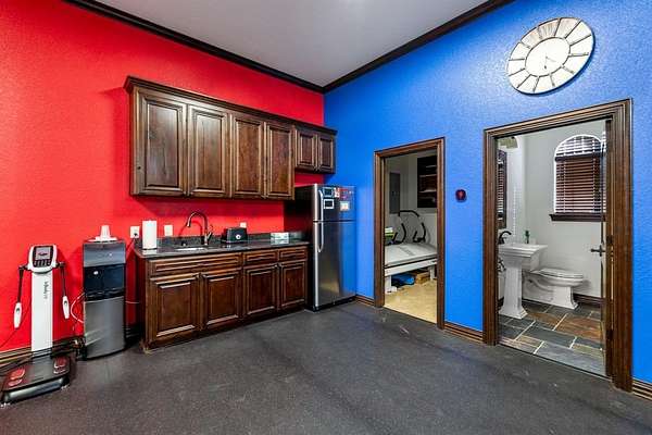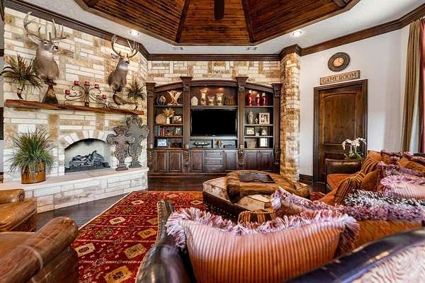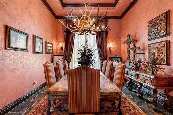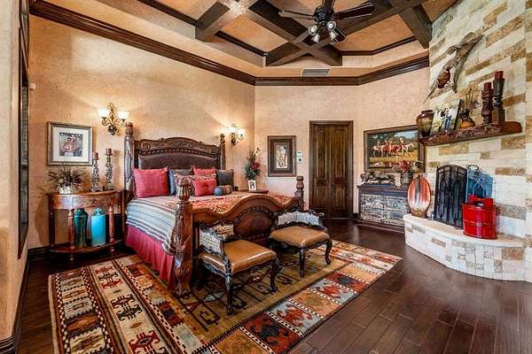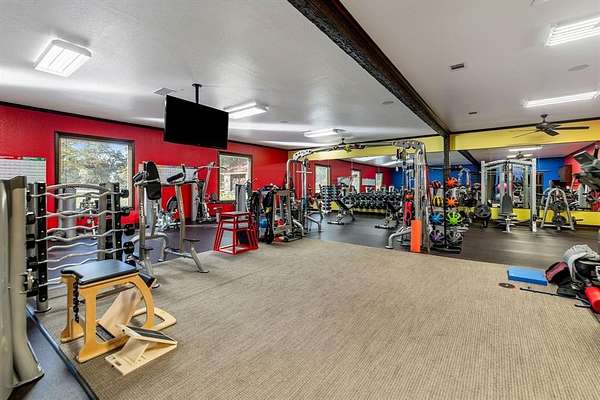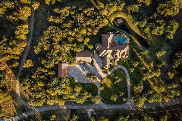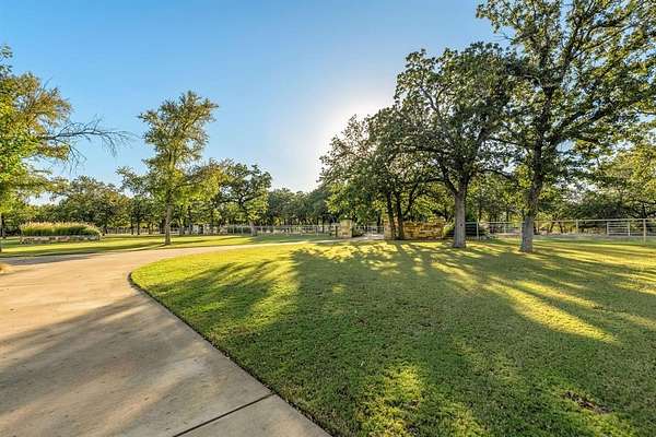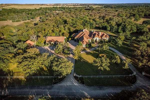 Tucked quietly behind the curve of Kelly Road, River Ranch Road is one of Aledo's best-kept secrets - a "if you know, you know" enclave of only 13 estate-like residences that lead back to the Clear Fork of the Trinity. Beyond the understated entrance towards the end of the road lies a property that perfectly balances privacy, scale, and sophistication. Set on just over 9 acres, this single story 6,996-square-foot main residence was built in 2013 and captures timeless Texas elegance, with a sparkling pool, large pond with a fountain, surrounded by mature trees, teeming with wildlife and mature whitetail deer. Inside, the expansive living space boast 4 bedrooms, an office, 2 living rooms, a sitting room, a bonus room, and it all flows seamlessly outside to over 2,000 square feet of covered back patios, framed by graceful stone arches that overlook fantastic pool and outdoor entertaining area, ideal for both quiet mornings and lively gatherings. A detached four-car garage and a standalone gym add flexibility and room to grow the already impressive property's footprint. The gym has ample space and could easily be reimagined as a guest house or secondary residence, offering endless possibilities for multigenerational living, work, or leisure. This is a rare opportunity to own one of Aledo's most exclusive addresses where every detail, from the setting to the craftsmanship, is designed for those who value space, privacy, and understated luxury. Located just 5 minutes from BlueJack Ranch and 10 minutes to town.
