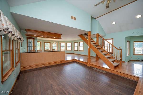 - Breakfast Bar, Built In Features, Cathedral Ceilings, Ceiling Fans, Eat In Kitchen, Entrance Foyer, Granite Counters, High Ceilings, Kitchen Island, Natural Woodwork, Open Floorplan, Pantry, Primary Downstairs, Recessed Lighting, Vaulted Ceilings, Walk In Closets, Wet Bar