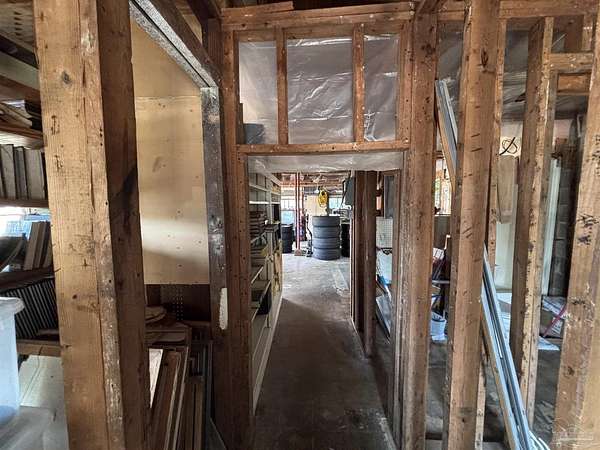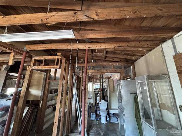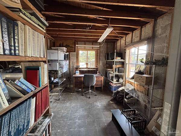 Wow Factor of natural beauty with unmatched waterfront - bring your fishing poles or boats! Amazing large waterfront property with spectacular water views conveniently accessible to all in downtown and west Pensacola! Current 45x27 cinder block house under wonderful Live Oaks has lots of potential and is currently used as a workshop. A builders delight with a 3/1 initial design and approximately 1000 sqft under current roof. Garage door in main building allowed 3 cars inside and was previously a specialty car shop. Old adjacent garage removed from the original 1459 sqft and can add back even more space over old garage floor as well as an additional large concrete pad behind. Interior walls are to the studs for remodel ease. Roof will need attention as it was planned to add a second story yet currently serves as a leak free shelter. Current septic system works perfectly and remote drains connectable for RV or additions. New pex water lines lead to the house as well as to an expansive addition area planned for waterview resturant usage. Zoned MDR with FLU being MU-U, that includes Commercial. Approximately 1 full acre with hundreds of feet of water frontage and spectacular water views, this prime lot has many palm trees as well as a variety of other beautiful oaks and blooming red maples. Creatively landscaped for functionality and aesthetics. Use your personal ramp to launch your boat into Jones Creek and Bayou Chico then Pensacola Bay to Gulf of America. The large Bermuda grass field is ideal for a soccer pitch or other sports and activities. Opportunities galore in a convenient, glorious park-like setting!