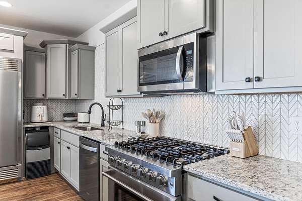- Gas Oven, Gas Range, Microwave, Refrigerator