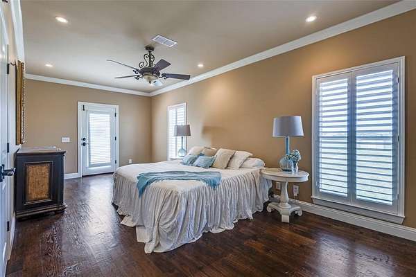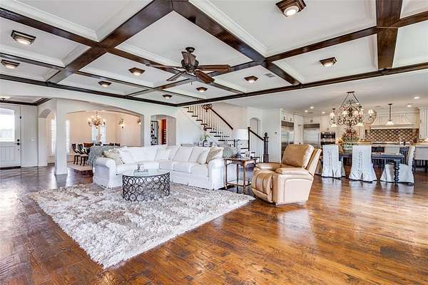 The property continues to impress with a 7-car garage, safe room, and whole-home Generac generator for peace of mind. Outdoors, the estate is equally remarkable—featuring a large barn with a 6,000 sq. ft. shop, 1,600 sq. ft. two-story guest quarters, and a 2,500 sq. ft. covered canopy area ideal for recreation or entertaining. The land offers excellent potential for equestrian use, sports courts, or agricultural ventures, all supported by extensive concrete driveways and ample parking.