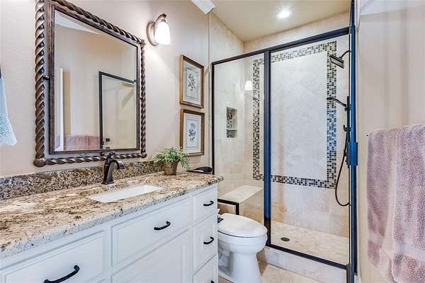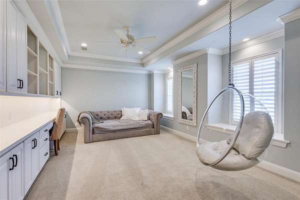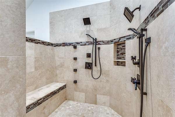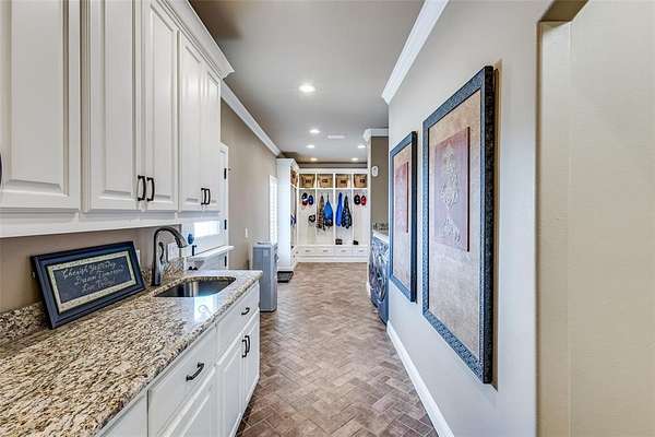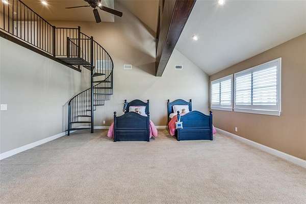 Upstairs, you’ll find six generously sized bedrooms, a secondary living area with built-ins, an additional laundry room, and a luxurious primary suite complete with a spa-inspired bath.