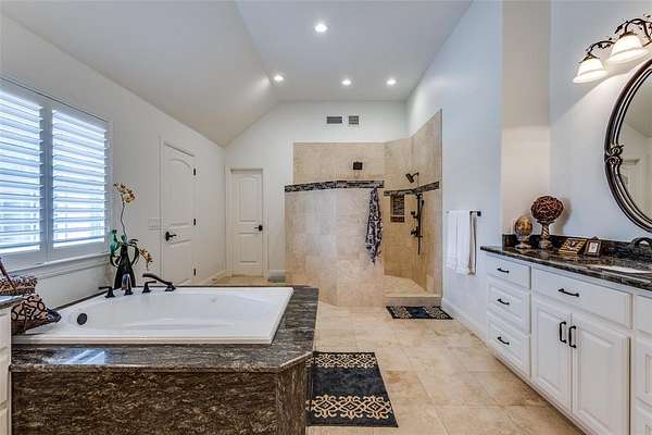 - Built-In Features, Built-In Wine Cooler, Cathedral Ceiling(s), Decorative Lighting, Double Vanity, Eat-In Kitchen, Flat Screen Wiring, Granite Counters, High Speed Internet Available, In-Law Suite Floorplan, Kitchen Island, Loft, Natural Woodwork, Open Floorplan, Pantry, Second Primary Bedroom, Vaulted Ceiling(s), Walk-In Closet(s)