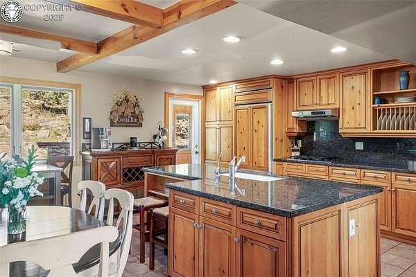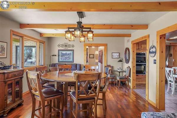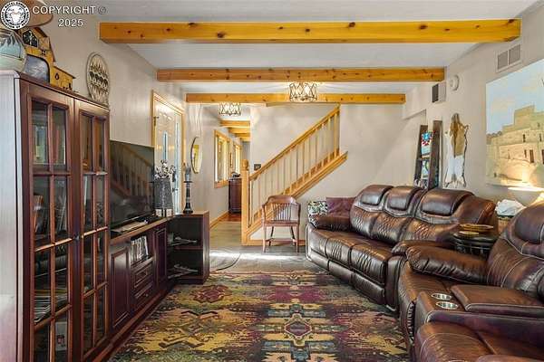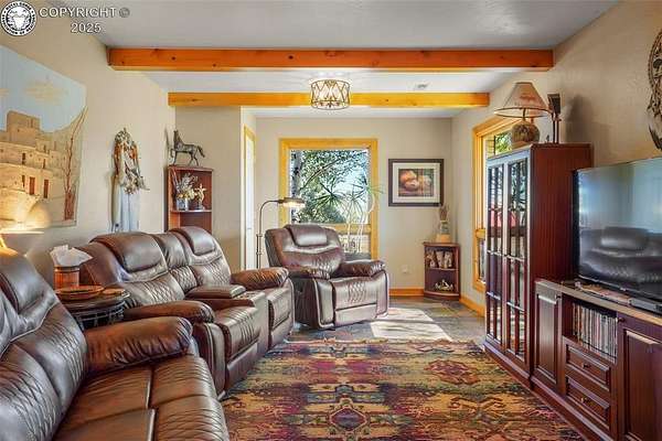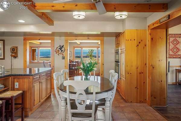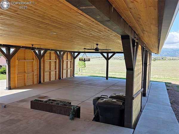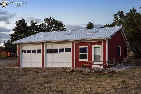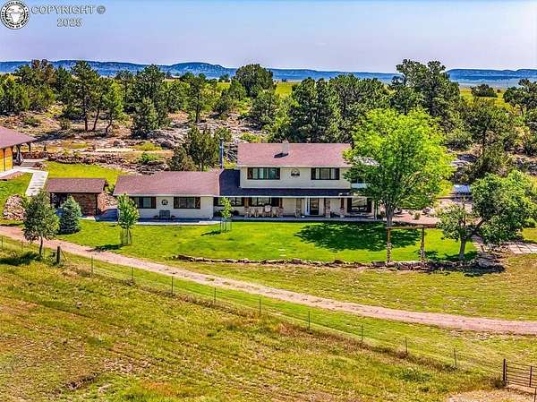 Discover this FURNISHED 3,500 sq ft home with 5 bedrooms and 6 baths (including a cozy bunkhouse) set on 80 or 160 acres(1.5Million) picturesque, fenced acres just 25 miles southwest of Pueblo. The main level offers expansive living space with a warm family room featuring a rock-wall wood-burning fireplace and breathtaking mountain views, a second inviting living room, two bedrooms, two bathrooms, and a laundry room. The gourmet kitchen includes granite countertops, custom cabinetry, and stainless appliances, opening into a dining room with a second wood-burning stove and an adjacent family room-easily convertible to a main-level master bedroom with a sliding barn door. Upstairs, the luxurious master suite includes French doors to an enclosed sunroom with a dry sauna, a spa-like ensuite bath with a soaking tub, steam shower, bidet, and walk-in closets. An office and additional bedroom complete the upper level. The home is surrounded by stunning rock formations, fragrant ponderosa pines, and unobstructed views of the Wet Mountains and snowcapped Greenhorn Mountain. Wildlife abounds, with frequent visits from deer, elk, and hummingbirds. Additional features include an attached 2-car garage, a detached 2-car garage with storage and workbench, a charming bunkhouse that sleeps 4 with kitchenette and half bath, a breathtaking moss-rock pavilion with custom lighting and a stage ideal for weddings or large gatherings, and a fully functional barn with tack room, hay storage, two stalls, grooming area, and pipe corral fencing. High-speed internet (250 Mbps) is installed, and the property has operated successfully as an Airbnb and wedding venue, offering optional business potential. Many couples have been blessed to exchange their wedding vows in this peaceful paradise. An additional adjoining fenced 80 acres is available for $220,000. A total of 160 acres for $1,500,000. Come explore the possibilities.
