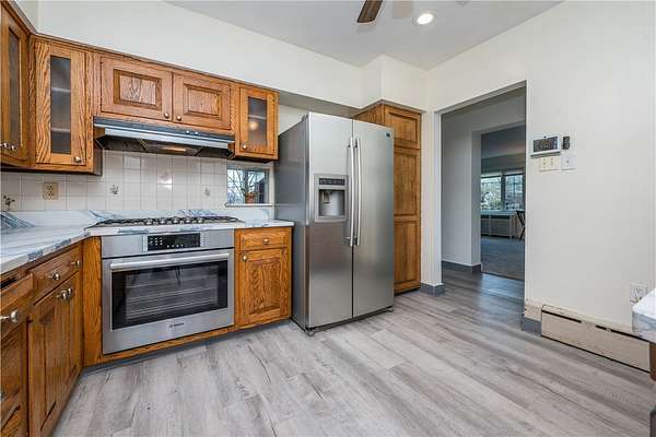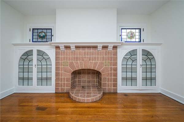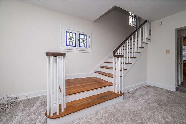 Charming 5BR, 3 full bath home blending classic character with modern updates! Features include hardwood, LVP & carpet flooring, ceramic tile baths, and heated floors in main & 2nd floor baths. Spacious living room with wood-burning fireplace and beautiful stained-glass windows throughout. Dining room offers built-ins and decorative fireplace.