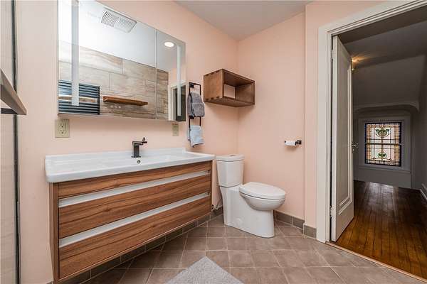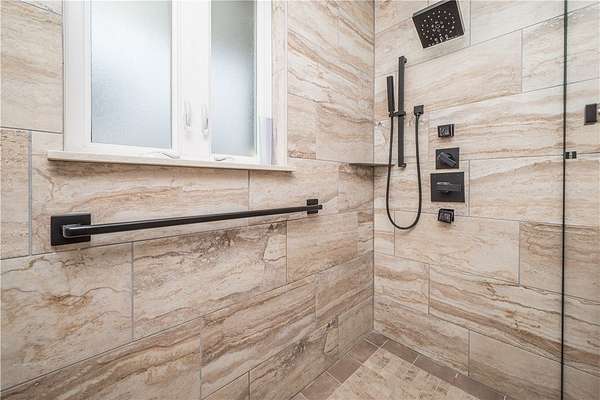 Updated kitchen with gas cooktop, electric oven, dishwasher, refrigerator & pantry. Primary bedroom features custom full-wall closet. Second-floor bath includes heated mirror, towel rack, multi-spray shower & humidity-sensing fan.