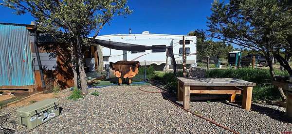 Est $3,255/moRare treed acreage on Loghill Mesa. 14.51 acres with views and no HOA. Water and electric service has been brought in to the middle of the property. Sale includes a 34' Keystone 5th wheel travel trailer, a modified shipping container shed, a chicken coop, and other outbuildings. The developed area is fenced and gated and the garden area and animal enclosures double fenced. Several potential building sites and plenty of room for toys. 2 paid water taps. No HOA or Covenants!