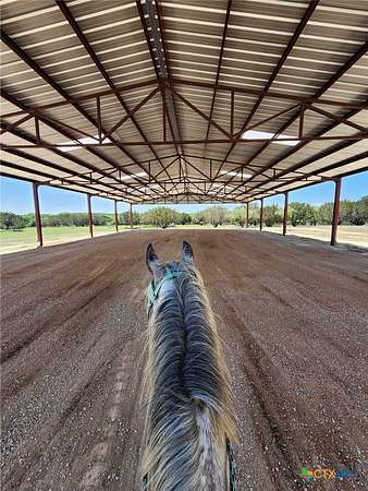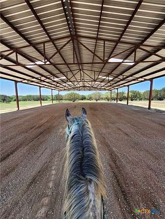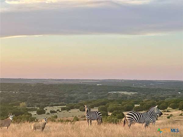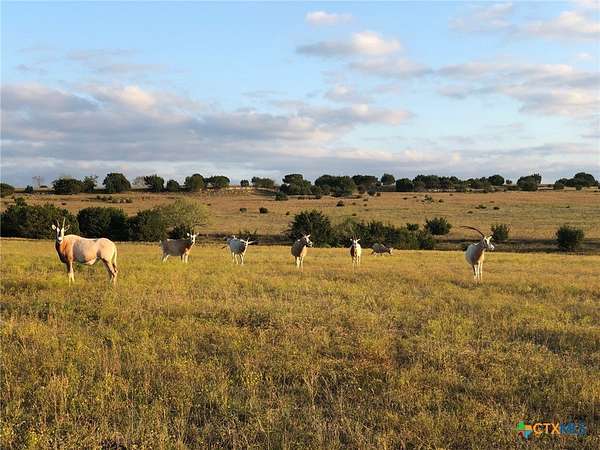 Discover this breathtaking 367-acre exotic game ranch ideally located just 6 miles west of Hwy 183 between Burnet and Lampasas, approximately 1 hour from Austin and 35 minutes from Killeen. Fully enclosed with a high perimeter fence, this exceptional property offers privacy, beauty, and endless recreational opportunities. The land features approximately 140 feet of elevation change, creating stunning long-range views, multiple elevations, and a scenic mesa. The ranch is richly wooded with oak and pecan trees, complemented by flowing wet-weather creeks and two natural spring areas scattered throughout the property. Rolling terrain and elevated vantage points provide unforgettable sunrises and sunsets across the landscape. Well-equipped for ranching and equestrian use, improvements include a covered arena, horse barn with two stalls, an exotic game barn with four stalls, a large tractor barn, a storage barn, and miles of beautiful equestrian trails to enjoy. Wildlife enthusiasts will appreciate that exotic animals are negotiable in the sale, including scimitar antelope, red deer, sika deer, whitetail deer, and aoudad. At the heart of the ranch sits a stunning 4,200+/- sq ft rock home, featuring a heated pool with waterfall, ideal for entertaining or relaxing while enjoying the panoramic Hill Country views. A container home is also on the property and is negotiable in the sale, offering additional guest accommodations. This rare Central Texas ranch combines natural beauty, luxury improvements, recreational versatility, and prime location-a truly exceptional opportunity.