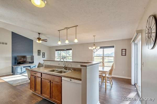 Welcome home to this beautiful 4 bed 2 bath ranch. This inviting property offers approximately 1.5 acres of country living with a garden, fruit trees, berry bushes and plenty of space for outdoor activities and includes a large pole barn, perfect for extra storage, hobbies, or even a workshop. This property features a spacious open-concept design with a seamless flow between the kitchen, dining, and living areas-ideal for entertaining. The main floor includes a primary suite with a full bath and walk-in closet. Two additional bedrooms and a full bathroom provide ample space for family or guests. A convenient main-floor laundry adds to the home's practicality along with a whole house generator. The finished basement includes an additional bedroom with plumbing for an additional bathroom in the future and even more living space and flexibility to suit needs whether it's a home office, recreation area, or guest space. Located in a quiet rural subdivision, you'll have the privacy and tranquility you desire while still being within reach of local amenities. Whether you're looking for space, convenience, or a peaceful retreat, this home has it all!
