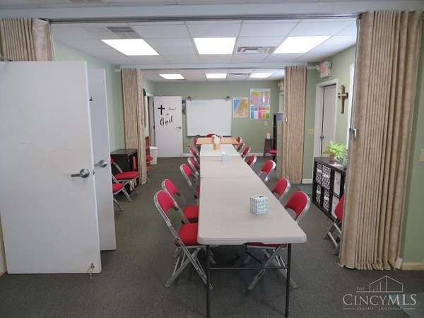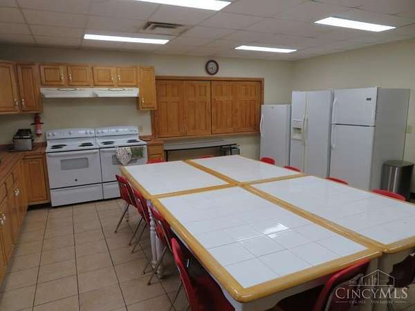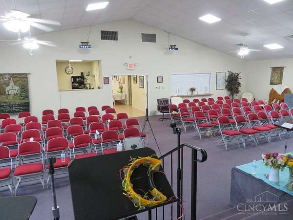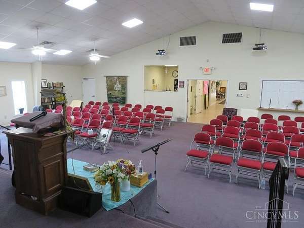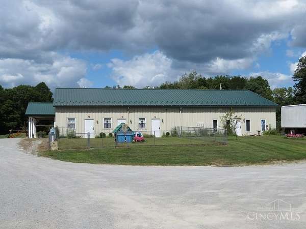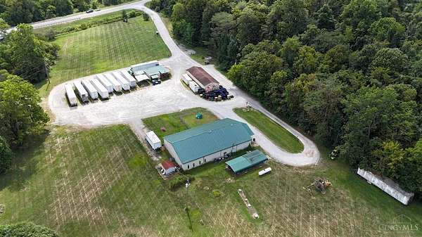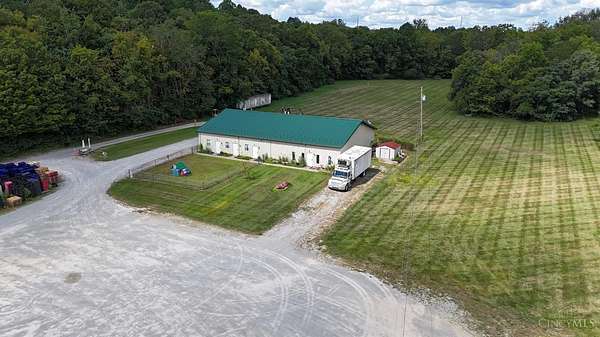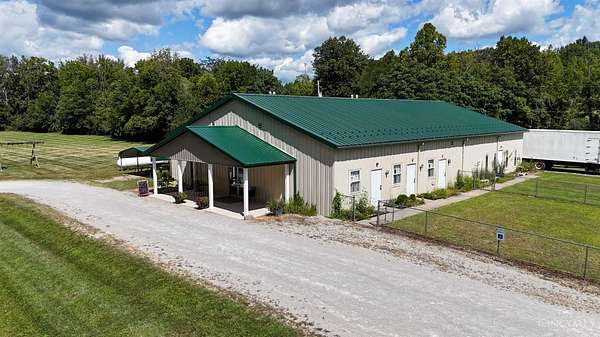 These multi-purpose structures can serve a multitude of uses! Approx. 50x80 clear span steel structure w/covered porch! 40x50 open area w/14 ft. raised ceiling, 22x42 entry/foyer, 14x36 office/classrooms, 21x21 eat-in kitchen w/walk-in pantry, men & women bathrooms, laundry w/step-in shower, 6x8 sound room! Carpet & tile floors, 4 gas HVAC systems, floored attic storage! 24x72 wood frame structure w/200-amp electric, concrete floor & 24x24 insulated area w/air conditioning, 24x48 enclosed carport w/electric! 12x52 concrete pad w/2 - 8x24 box truck refrigerated boxes! Approx. 1 acre gravel parking area, circle driveway, 12'' drainage tile network, oversized septic system! Multiple outbuildings, carport/picnic shelters, fenced area! A generous 13.715 acres w/7.8 acres of woodlands, minutes from town! Served our community as a church & food ministry. Time for your vision! A retreat, campgrounds, machine shop, woodworking, manufacturing, car lot, offices, wedding/banquet venue this is it!