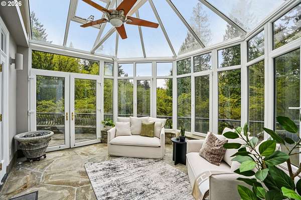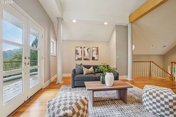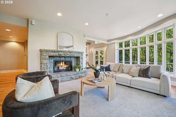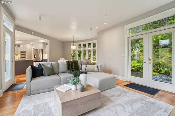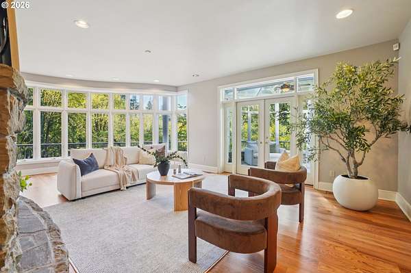 Private, forested retreat with serene territorial views! This spacious and beautifully updated 4-bedroom home offers exceptional flexibility with a great room, family room, den/office, and sunroom-perfect for everyday living, entertaining, or working from home. The main kitchen has been thoughtfully remodeled with new cabinetry, stunning Dekton countertops, an island, pantry, double oven, and gas appliances, seamlessly connecting to bright and inviting living spaces. Throughout the home, you'll find newly refinished hardwood floors, high ceilings, and abundant natural light. Extensive updates include all new interior and exterior paint, a central vacuum system, and a new water filtration and softening system for added comfort and convenience. The primary suite provides a spa-like retreat with a steam shower, heated towel bar, and walk-in closet. Step outside to enjoy peaceful outdoor living with expansive decks, a balcony, landscaped grounds, fire pit, and multiple water features that enhance the tranquil setting. The property also features an oversized garage with workshop space and a new cellular entry gate system, offering both functionality and privacy. In addition to the main home, a fully equipped ADU provides excellent flexibility for multi-generational living, guests, or rental income potential. The ADU includes its own separate entrance, a full bedroom, and a completely updated kitchen with new cabinetry, quartz countertops, and all-new appliances, creating a comfortable and private living space. Tucked away on a secluded road, this property offers a rare combination of quiet, natural surroundings while still being conveniently located near everyday amenities. [Home Energy Score = 2. HES Report