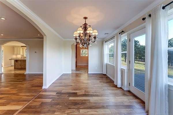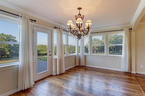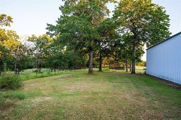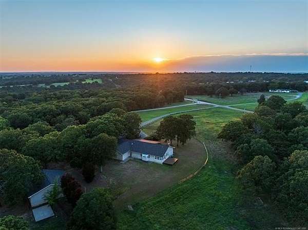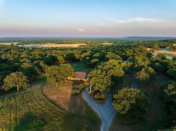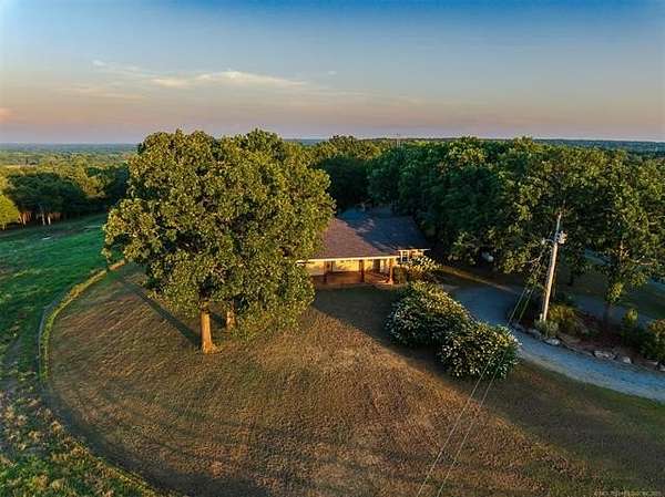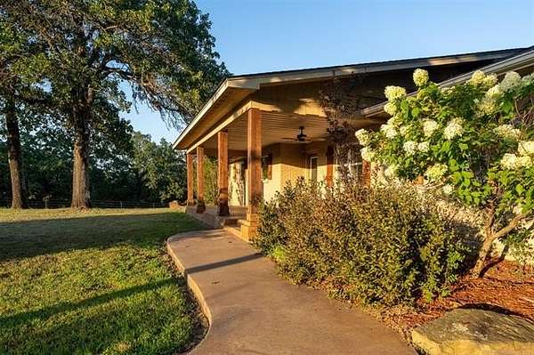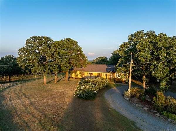 Unlock the door to this Oktaha custom ranch-style home nestled on a 10 acre rolling patch of peace and tranquility. Beyond the fenced and mature-tree lined acreage lies a professionally landscaped jewel that welcomes visitors with custom cedar beams on a beautifully stained porch. The front door features inlaid iron accents on your way to custom glazed cabinetry cloaked in granite countertops and a grandiose cooktop fit to feed royalty, all while peering out 2 expansive windows to admire passing wildlife outside. The home features 3 bedrooms, 2 bathrooms, a large laundry/office area as well as a sunlit dining area flanked by a fresh deck ready for entertaining or relaxing. Venturing further on, Rural water along with a well house that is perfect for quenching both livestock and landscape! Rounding out the last leg of the tour is a detached 2 car garage and an expansive shop fit to house all your mechanical equipment, machinery, or any other purpose the mind can conjure. Truly a must see property!