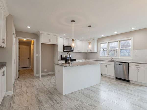 Simply stunning is this breathtaking brick and cedar 5 bedroom, 2 full/2 half bathroom, two story home with a finished English basement in the Wyndwood Subdivision! This completely remodeled home has over 4240 square feet of finished living space including 1143 square feet in the finished basement and sits on 1.5 acres of land. Enter the foyer with refinished oak hardwood floors that flow seamlessly into the adjacent formal dining room. On the other side is a main floor office with French doors that you can close for privacy to minimize noise and disruptions. Brand new custom kitchen with white shaker cabinets, new recessed lights and light fixtures, center island/breakfast bar with vegetable sink, pantry closet, Quartz countertops, and new SS appliances. Designed with functionality in mind, this home features an open layout seamlessly connecting the kitchen and living room that offers a floor to ceiling brick gas log fireplace to keep you warm on the coldest of nights. Slider doors in both the kitchen and living room lead you to the deck with a screened gazebo to sit and relax with your morning coffee or relax after a long day in those warmer months...bug free!!! Upstairs you will find an owner's retreat with vaulted ceilings and a fully remodeled en-suite bathroom that includes 2 separate vanities, designer soaker bathtub, and a separate shower. Three additional bedrooms and a second full bath upstairs round out the sleeping area of this home. Third floor offers the fifth bedroom that could also be a craft room or library...the possibilities are endless!!! Full finished English basement includes recreation room with another floor to ceiling brick fireplace with gas logs, game room and an exercise room. Main floor laundry/mud room is accessed directly from the oversized 2.5 car garage keeping your floors free from mud and snow, also offering cabinetry for storage, wash sink and room for nooks/hooks for coats and accessories. The garage is equipped with an extra bay with rear overhead door for lawn equipment or possible workshop. Out back you will find a 45' x 14' sized deck, a new brick paver patio, and raised gardening beds. The exterior has been freshly painted and features a new architectural shingle roof. All new HVAC, water heater and softener complete this package so all you have to do is move in and enjoy!!! Veterans Acres Park is within 3.5 miles and Crystal Lake Nature Park is within 3 miles. This is a Fannie Mae HomePath property.