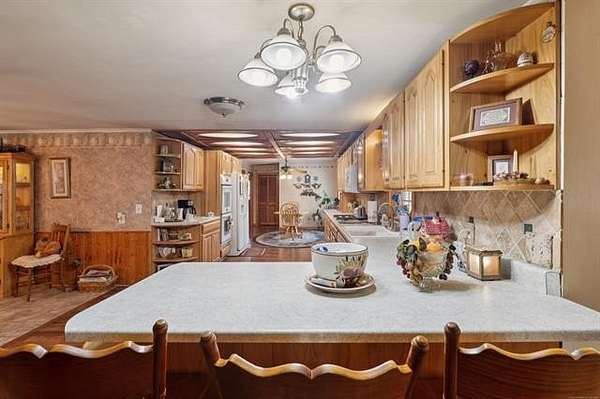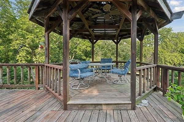 BEAUTIFUL YEAR ROUND VIEW OF FORT GIBSON LAKE, 3 BED, 2.5 BATHS, UPDATED KITCHEN WITH BREAKFAST BAR, GAS COOKTOP, DOUBLE OVENS, GRANITE, TRAVERTINE BACKSPLACH, 21' OF HICKORY CABINETS, BREAKFAST NOOK, DEN WITH LOTS OF NATURAL LIGHT, GAS LOG FIREPLACE, OPENS TO COVERED PORCH WITH HUGE DECK THAT HAS A GAZEBO, POND, 50X24 SHOP, 43 PECAN TREES, 2.5 ACRES, MASTER BEDROOM ENSUITE HAS LARGE WALK-IN CLOSET AND LARGE MASTER BATH, LIVING ROOM HAS WOOD BURNING, FORMAL DINING, LARGE UTILITY ROOM/SEWING ROOM, COME SEE THIS PEACEFUL HOME WITH VIEW!