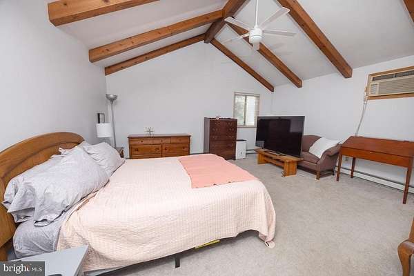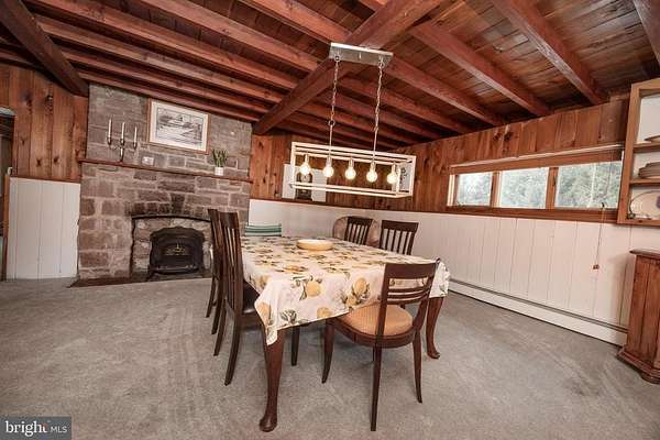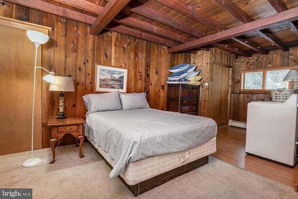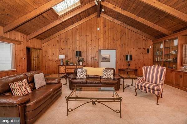Furnished four bedroom home in Solebury Twp, close to downtown historic New Hope Borough and main commuting roads, enjoy a mostly one-floor living space with three bedrooms and three full bathrooms and two laundry rooms on the ground level. A sprawling living room features a 15' + cathedral ceiling, wood burning fireplace, and built in bookshelves, with two bedrooms adjacent including a primary bedroom with 12' vaulted ceiling, exposed beams, laundry and en suite full bathroom. Formal dining room off the large eat in kitchen, and a three-seasons sunroom (unheated) is full of natural light. A second laundry is located in the third main level bedroom, and a fourth bedroom on the second floor rounds out a flexible floor plan.