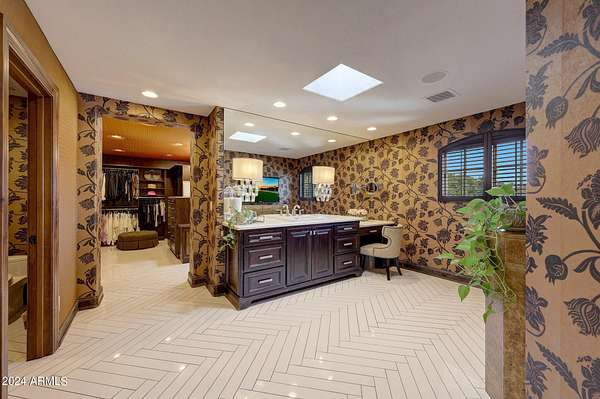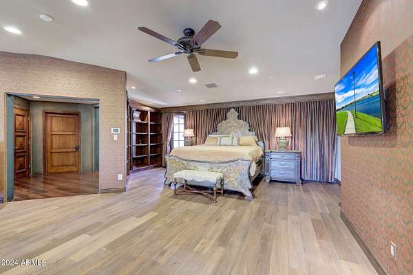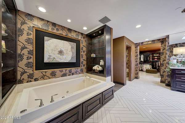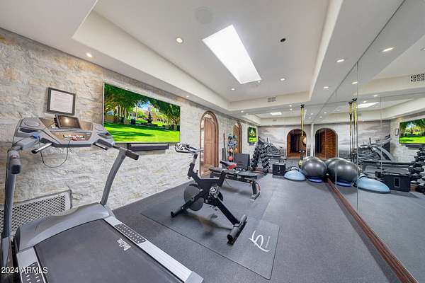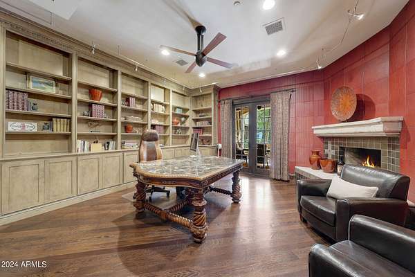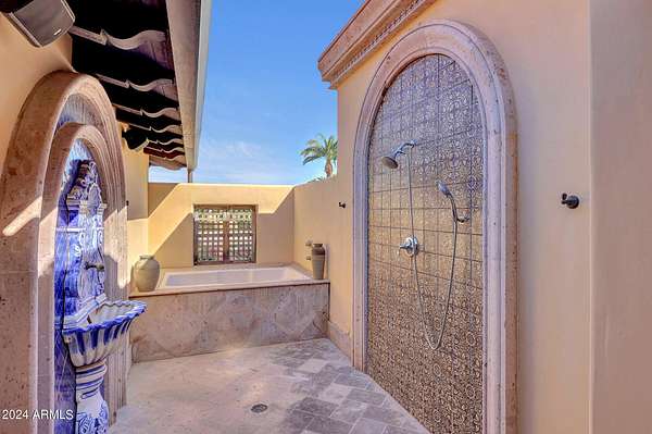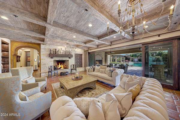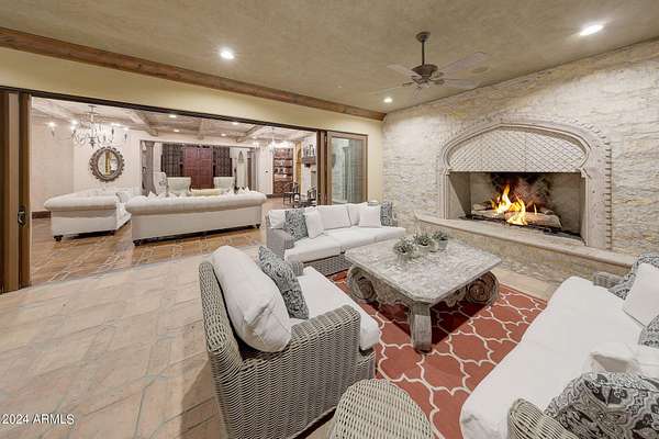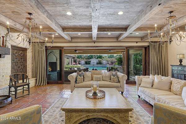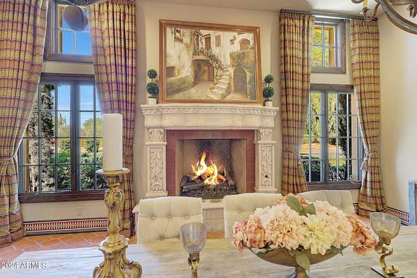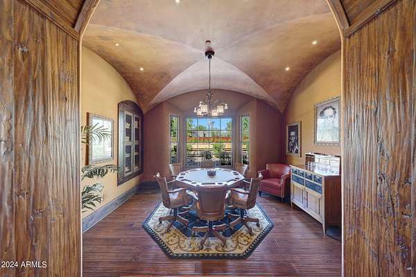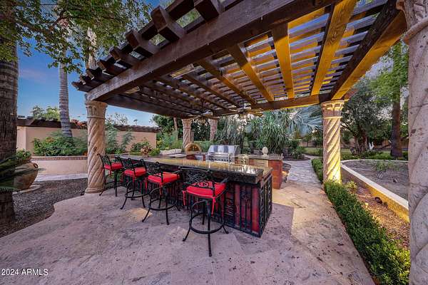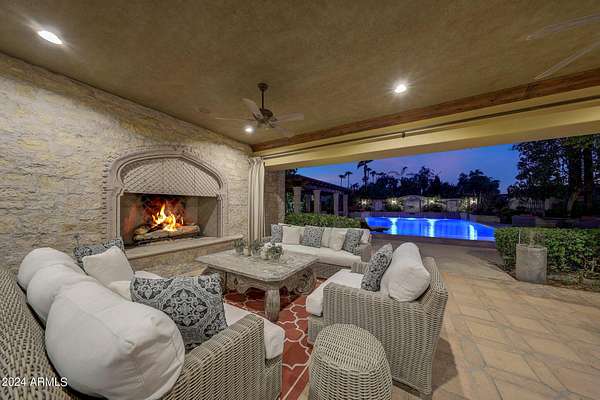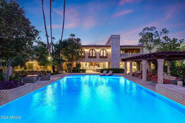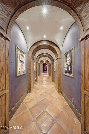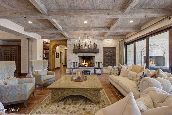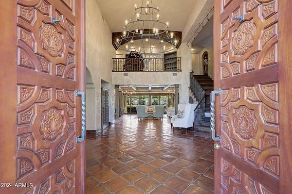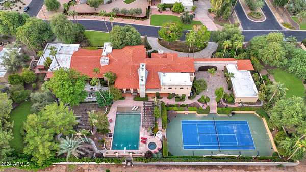 Exceptional Estate for Sale in Guard-Gated Equestrian Manor, Scottsdale Step into a realm of timeless elegance with this breathtaking French provincial estate, nestled on a sprawling 1.6-acre lot in the exclusive guard-gated community of Equestrian Manor. This remarkable residence exudes sophistication and charm, making it a true forever home. Spanning an impressive 13,700 square feet, the estate features 7 luxurious bedrooms and 10 meticulously designed bathrooms. Step into a culinary paradise designed for both functionality and flair. This expansive chef's kitchen is a true entertainer's dream, featuring an abundance of workspace and top-of-the-line appliances that will inspire your inner gourmet. Host unforgettable gatherings in the resort-style outdoor kitchen, complete with a stunning diving pool surrounded by manicured grounds and lush landscaping. The tennis court adds to the recreational amenities, ensuring endless fun for all ages. Inside, experience the allure of wood-beamed and domed ceilings, along with 11 grand fireplaces that serve as stunning focal points. The hand-carved wood accents and stone walls add a touch of artisanal craftsmanship throughout the home. Enjoy cinematic experiences in the dedicated movie theater, featuring an impressive 167-inch screen. The game room promises endless entertainment options for family and friends. The exquisite wine room is perfect for connoisseurs, while the office/library provides a serene space for work or relaxation. Marvel at the custom iron work that adorns the estate, from the elegant fence to the striking stairwell and chandeliers, to the Juliette balconies, elevating the home's aesthetic to new heights. A spacious 8-car motor court offers ample room for your collection of vehicles. This estate is not just a home; it's a sanctuary of style, comfort, and grandeur, inviting you to create lasting memories in an unparalleled setting. Don't miss the opportunity to own this exceptional property in one of Scottsdale's most sought-after communities.