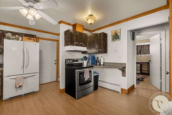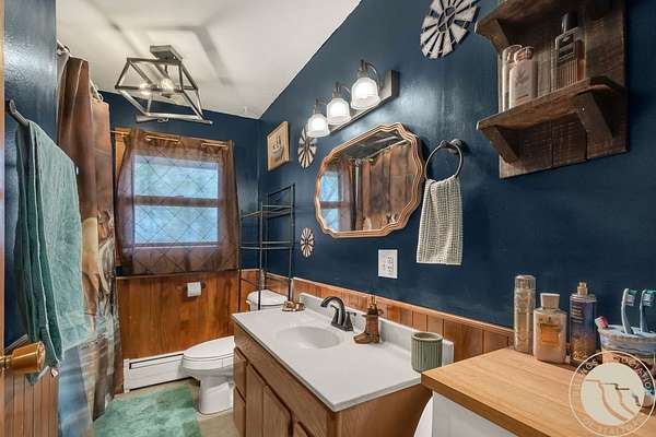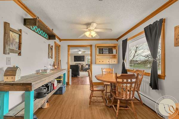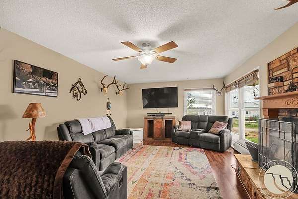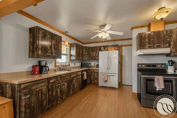 This 4-bedroom, 1.5-bath home sits on 2.4 fully irrigated acres and offers the space and setup you've been looking for. The main level features 3 bedrooms, a full bath plus half bath, a spacious living room, and a large open kitchen and dining area. Stay cozy year-round with a wood stove upstairs and a propane stove downstairs. The lower level adds a fourth bedroom, a huge additional living space, and an oversized laundry room and mechanical room with plenty of storage. Outside, the property is fully fenced and ready for horses with pipe corrals, a barn with tack and feed storage, an additional outbuilding, and a loafing shed already in place. Complete with a covered back deck and attached two-car garage, this property offers the perfect blend of comfort, functionality, and country living-just minutes from town.