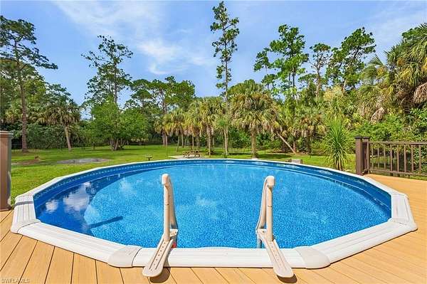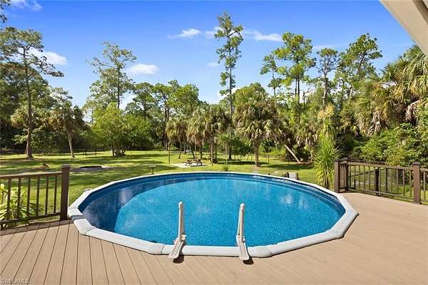 A Private Retreat in Golden Gate Estates - Where Nature Meets Elegance Welcome to your own slice of paradise in the heart of Golden Gate Estates, where tranquility, privacy, and timeless charm define everyday living. Nestled on 2.81 acres of pristine upland, this beautifully maintained pool home offers a rare blend of natural serenity and modern comfort. Positioned deep within the lot and surrounded by lush greenery, the residence enjoys unmatched peace and quiet-free from road noise and untouched by flooding. Step inside to discover a sun-filled, open-concept layout featuring 3 spacious bedrooms and 2 full baths. Tile flooring flows throughout the home, combining low-maintenance practicality with classic style. Every room is bathed in natural light, creating a warm and welcoming atmosphere from dawn to dusk. Outdoors, the setting is nothing short of magical. Wake up to the gentle sounds of native birds and deer wandering nearby, and wind down with golden sunsets that turn the sky into a canvas. The expansive 1,050 sq. ft. deck-built in 2020-wraps around a 24-foot above-ground pool, offering the perfect space for entertaining, relaxing, or soaking up Florida's natural beauty. The fenced-in backyard adds another layer of comfort and security, making it an ideal space to play freely and safely. Whether it's weekend games, family gatherings, or simply letting pets roam with peace of mind, this outdoor haven is designed for everyday enjoyment. Recent upgrades include: 2025 Brand-new metal roof and resurfaced driveway, 2023 Lennox A/C system, New 2025 Culligan whole house water softener system, 2025 All-new kitchen appliances, 2021 Detached garage for added storage and utility. The home features durable Hardie board siding (fiber cement siding) for long-lasting beauty and protection. Enjoy the charm of a covered front porch, ideal for morning coffee or evening reflection. With no HOA fees, you'll have the freedom to enjoy your property your way. Despite its secluded feel, this estate is just 10 minutes from shopping, dining, and daily conveniences-and only 30 minutes from Naples' world-renowned beaches. High-speed internet and reliable utilities make remote work and streaming effortless. This isn't just a home, it's a lifestyle. A rare opportunity to own a peaceful, nature-rich estate with modern amenities and unbeatable location. Come experience the serenity and charm of this hidden gem in Golden Gate Estates.