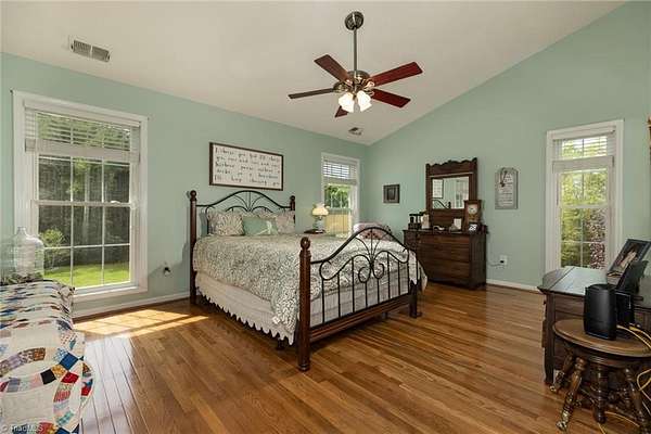 If you've been looking for a place that feels like home the moment you pull in, this is it. Tucked on 2.36+/- acres with multiple creeks, this inviting ranch home offers a peaceful setting where you can slow down & enjoy the simple things like morning coffee on the back deck, evenings by the fire, & space to spread out inside & out. Step inside to vaulted ceilings, gorgeous hardwood floors, & arched doorways that add character. The living room centers around a beautiful gas log fireplace, perfect for gathering w/ family & friends. The kitchen comes ready with stainless steel appliances that convey. Downstairs, the finished basement offers a cozy family/rec room w/ gas logs & two additional rooms that could be used as a 4th & 5th bedroom, office, or flex space. Outside, there's room to roam, play, & relax w/ a playset & tree swing in place. Located in a well-established neighborhood where homes rarely come available, this is the kind of place you'll want to stay.