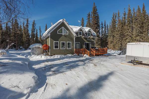 Tucked away on 4.7 acres, this property offers a VA assumable loan at just 2.75%, presenting a great opportunity for qualified buyers. it has a private, out-of-town feel while still being just a short drive from everything you need. Inside, the home features one large bedroom with a walk-in closet, a loft area that adds extra usable space, and a spacious kitchen and living room that feel open and comfortable. The kitchen has updated solid surface countertops, and the wood stove adds a warm, cozy touch, perfect for those colder months. Outside is where this place really shines, trail access right from the property and plenty of yard space to enjoy. Keep an eye out for visiting moose, and on clear nights, you may even catch a glimpse of the aurora right from your own property. Whether you’re looking for some breathing room, a spot to explore, or just a quieter place to call home, this one checks a lot of boxes.