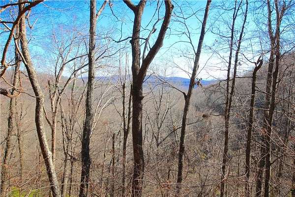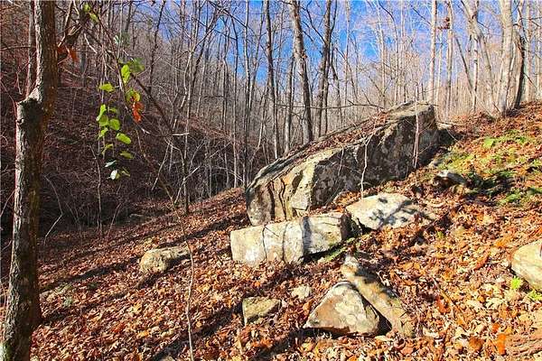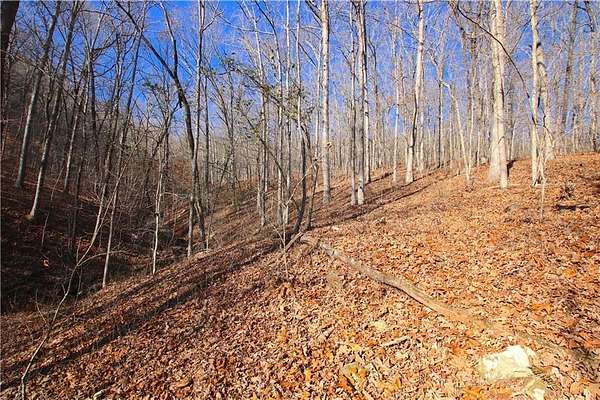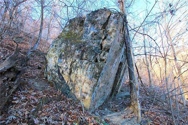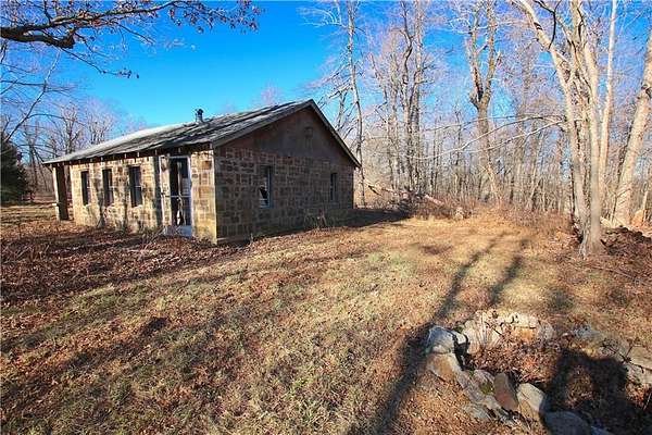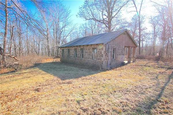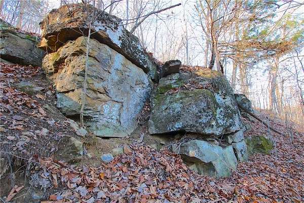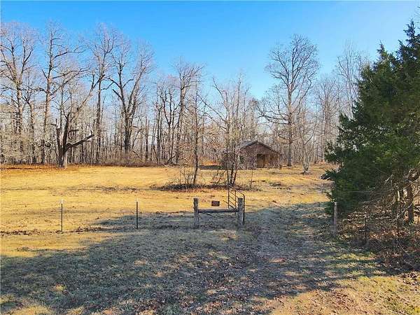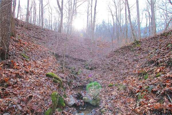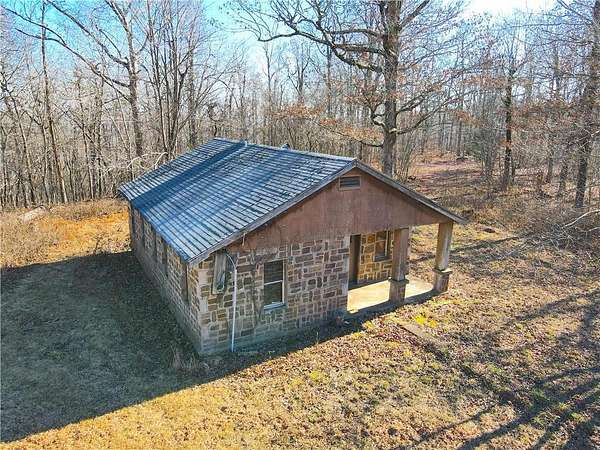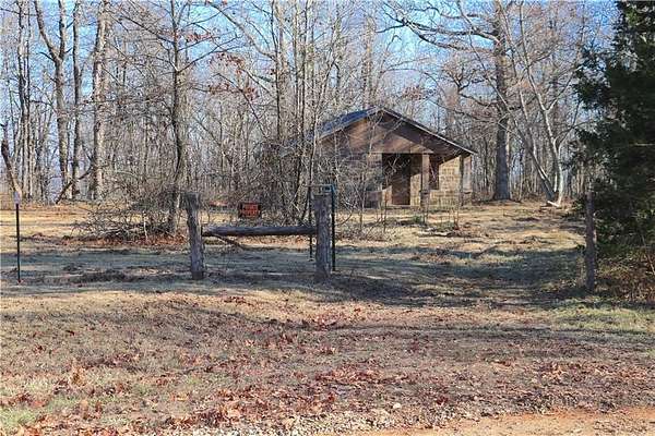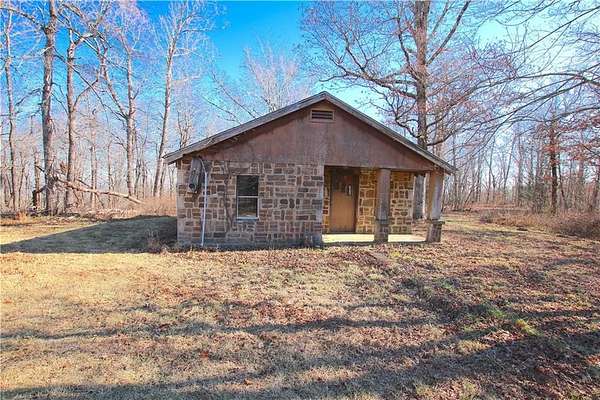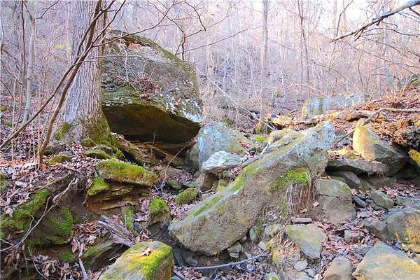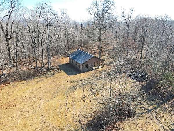 From the cleared front area, you can catch glimpses of the expansive Ozark mountain views, which can be further enhanced with some clearing. The proximity to the Ozark National Forest offers exceptional hunting and abundant wildlife activity. A 690 sq. ft. cabin is present on the land, providing the option to renovate or remove it entirely. The varied terrain supports wildlife movement to water and food sources, while the timbered areas reveal beautiful rock formations and small water features. This property strikes an ideal balance between seclusion and accessibility.