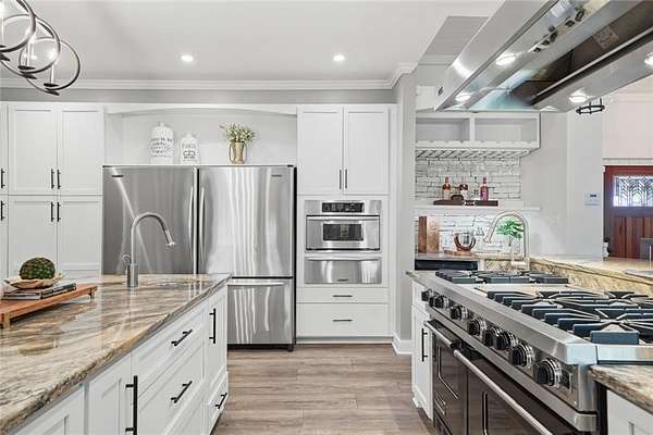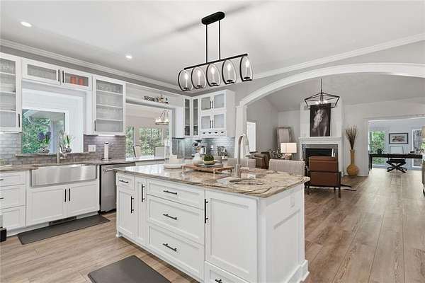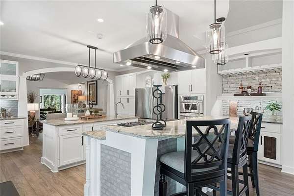 - Beamed Ceilings, Cathedral Ceiling(s), Crown Molding, Double Vanity, Dry Bar, High Ceilings 10 ft Main, High Speed Internet, Recessed Lighting, Vaulted Ceiling(s), Walk-In Closet(s), Wet Bar