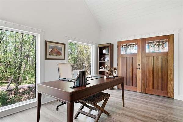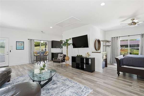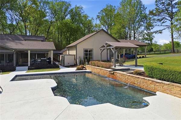 A Rare Hobby Farm & Lifestyle Retreat on 6 Scenic Acres. Tucked in the heart of rapidly growing Dawson County, this one-of-a-kind property blends refined country living with endless opportunity to create your dream lifestyle. Originally a horse farm with a former riding arena beneath your feet, this three-stall barn has been transformed into a workshop, complete with a full bath and dog wash station. The original stall doors have been carefully stored and can be reinstalled if desired. Whether you envision horses, gardens, or simply wide-open space to breathe, this property invites you to design your own version of peaceful, intentional living. Beautifully renovated main home (2024/2025) offers over 4,200 square feet of elevated living with a layout that feels both comfortable and refined. A charming 900-square-foot guest house welcomes family and friends (this is one of the main level bedrooms & bathrooms) , while the newly refreshed pool creates the perfect setting for relaxed afternoons. The impressive 8,000-square-foot multi-use building offers endless possibilities, featuring a car lift (included), pickleball court, media room, RV hookup and sewer clean-out on site, and so much more. From hobby pursuits to hosting gatherings, a private business, or even a lifestyle-driven retreat concept, this space adapts to your vision. Car enthusiasts, hobbyists, and entrepreneurs alike will appreciate the abundance of garage and workshop space, while those seeking a slower pace will fall in love with the lifestyle this property affords. The impressive 8,000-square-foot multi-use building opens the door to endless possibilities. From hobby pursuits to hosting gatherings, a private business, or even a lifestyle-driven retreat concept, this space adapts to your vision. Car enthusiasts, hobbyists, and entrepreneurs alike will appreciate the abundance of garage and workshop space, while those seeking a slower pace will fall in love with the land, the setting, and the lifestyle this property affords. This is more than a home - it's a place to live fully, create freely, and enjoy the beauty of a hobby farm lifestyle. With over 320 feet bordering Lake Lanier Corp property, nature becomes part of your everyday backdrop.